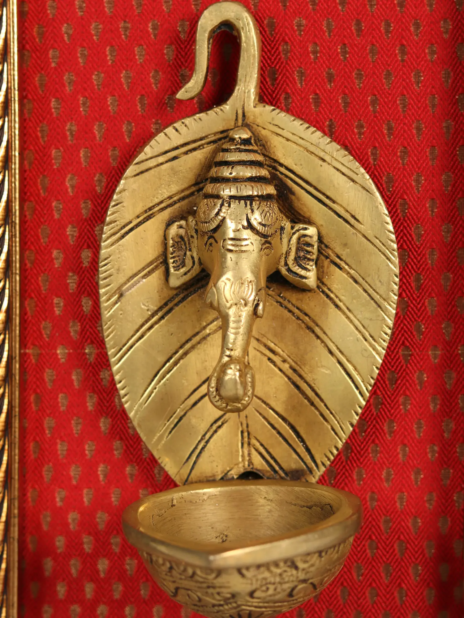 This wooden framed Leaf Ganesha attested over a Diya is the epitome of Lord Ganesha’s glow that is equivalent to a million suns. This wall hanging made in a regal background of red and maroon consists of a central brass sculpture of Lord Ganesha inside a leaf. This amalgamation of all auspiciousness is a perfect fit for a home where all holiness resides.