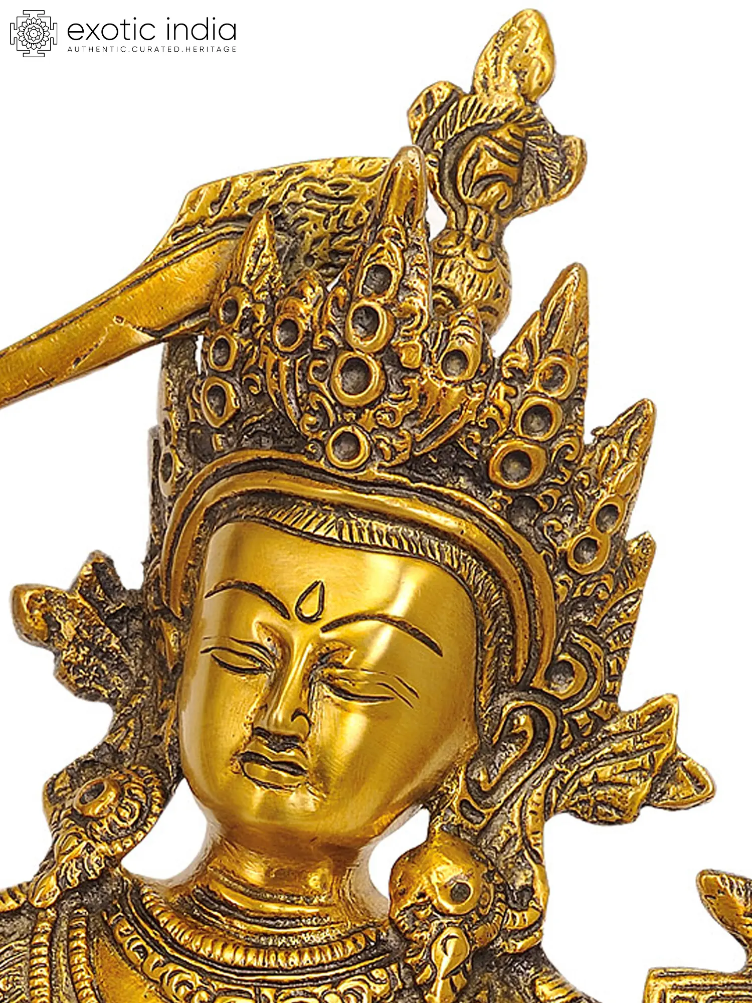 14" Manjushri - Bodhisattva of Transcendent Wisdom In Brass | Handmade | Made In India