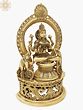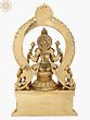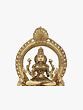 One of the glamorous aspects of this Lakshmi brass sculpture is the stylized semi-circular base decorated in beautiful and smooth carvings, with a double-layered view at the bottom and the Kirtimukha face in the centre with its fangs protruding long enough to form a pattern of coiled beauty of vines.