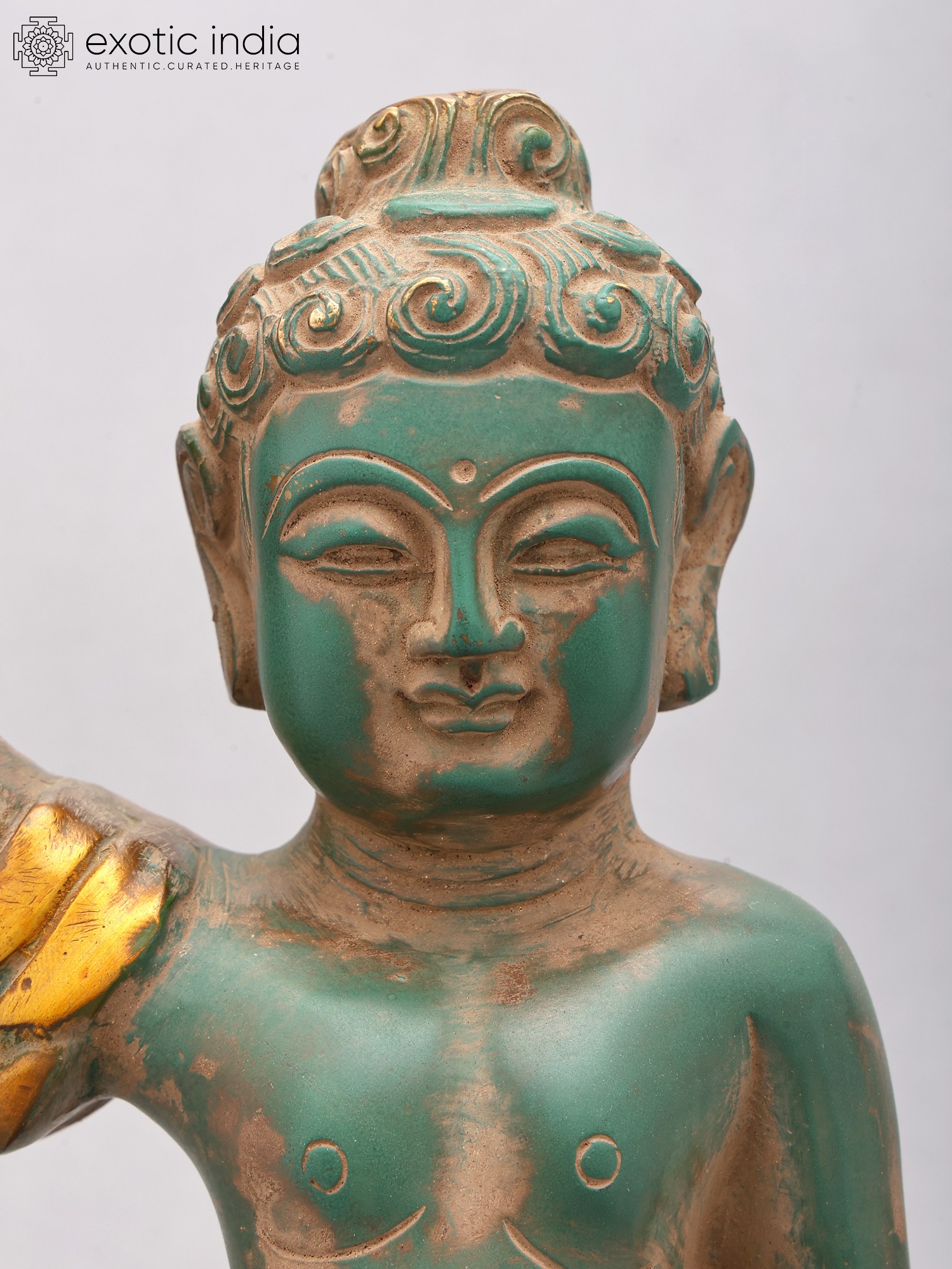 Seated Lakshmi Brass Figurine with Jade Base - Wealth Deity