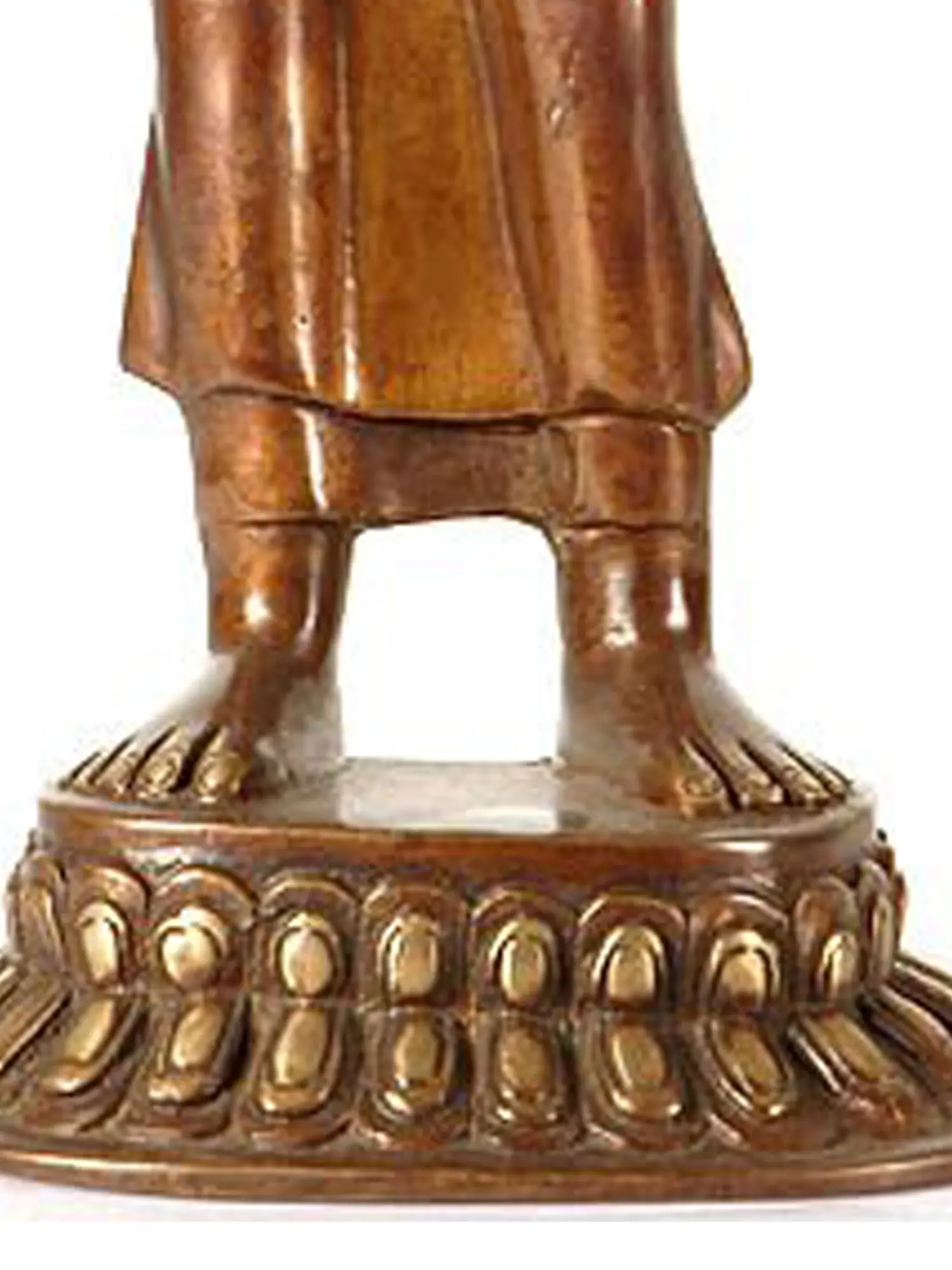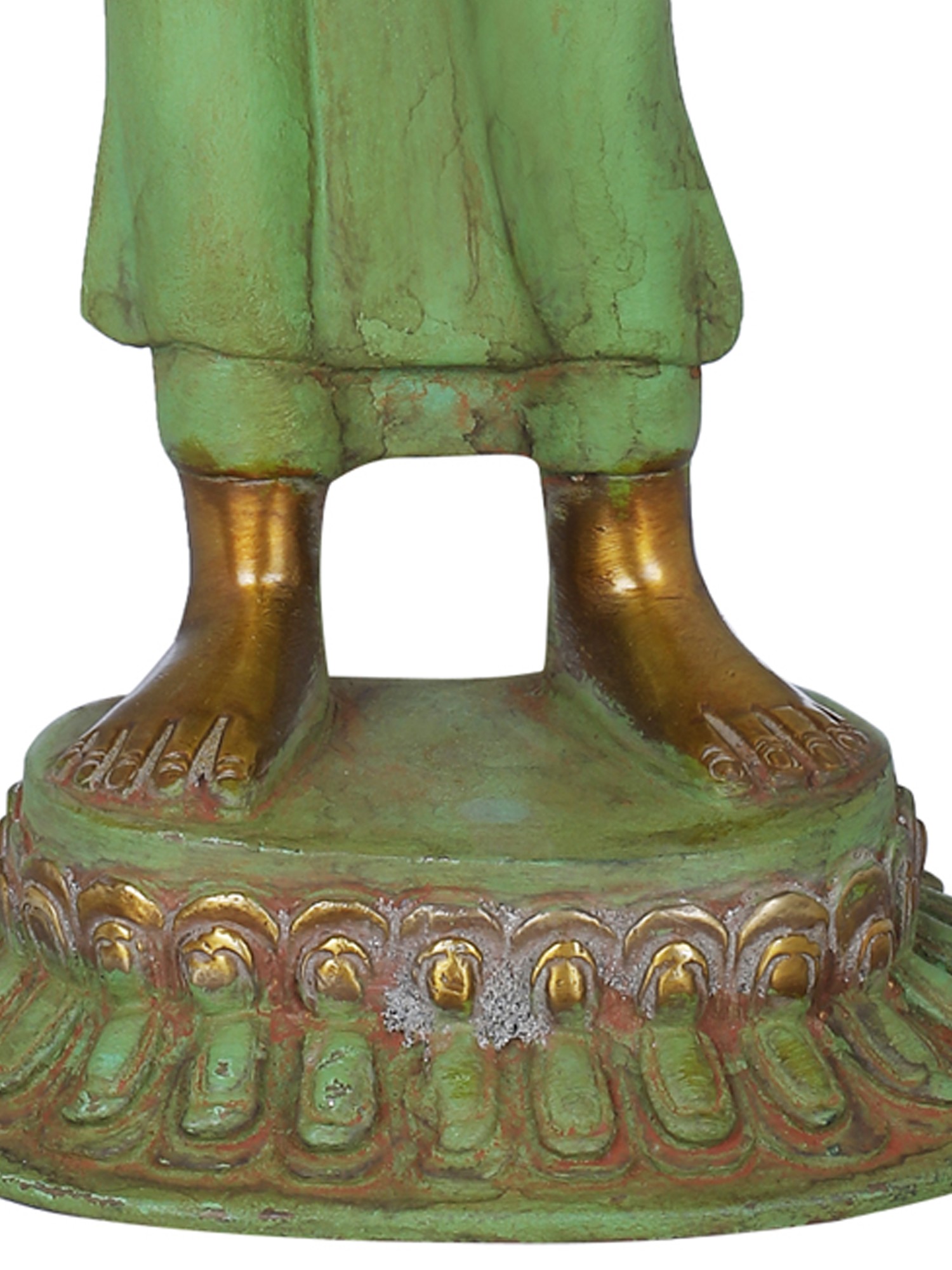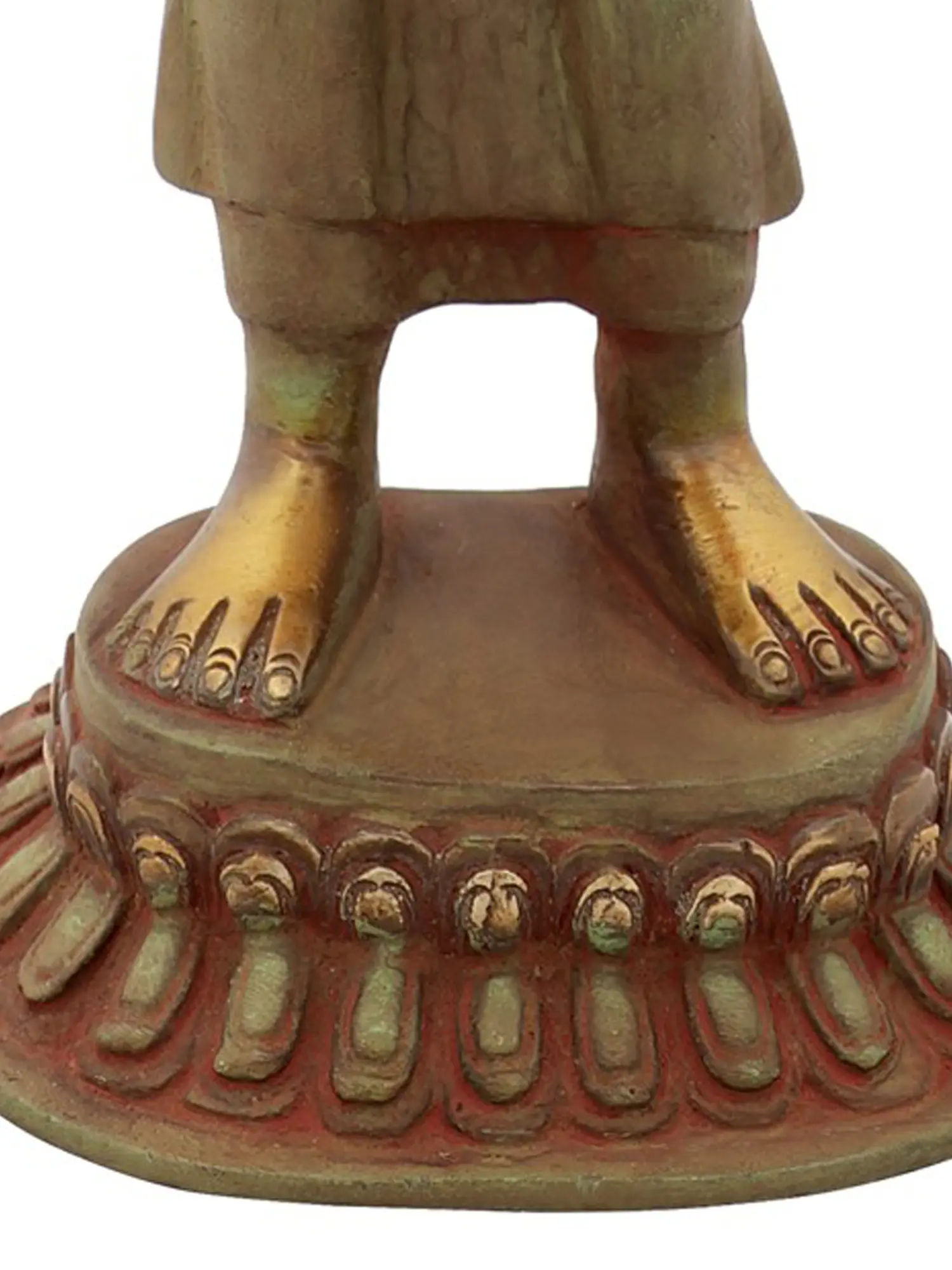 14" Standing Thai Buddha In Brass | Handmade | Made In India