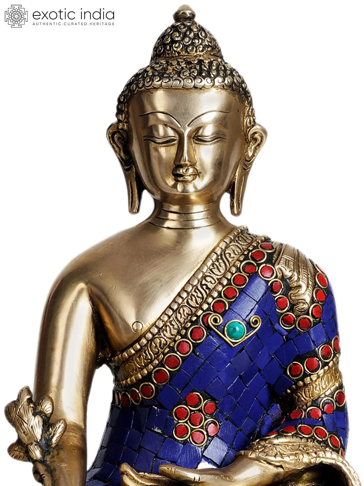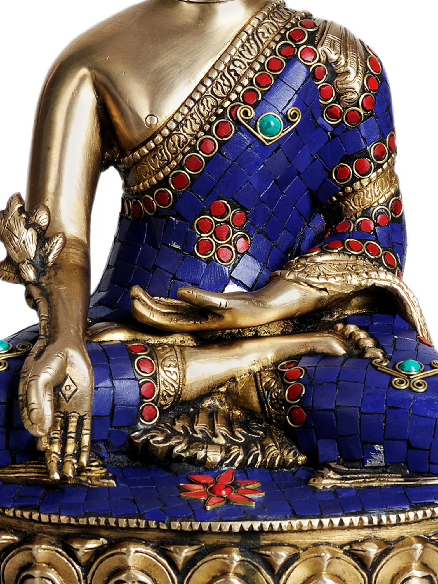 14" Tibetan Buddhist Deity- Lapis Healing Buddha In Brass | Handmade | Made In India