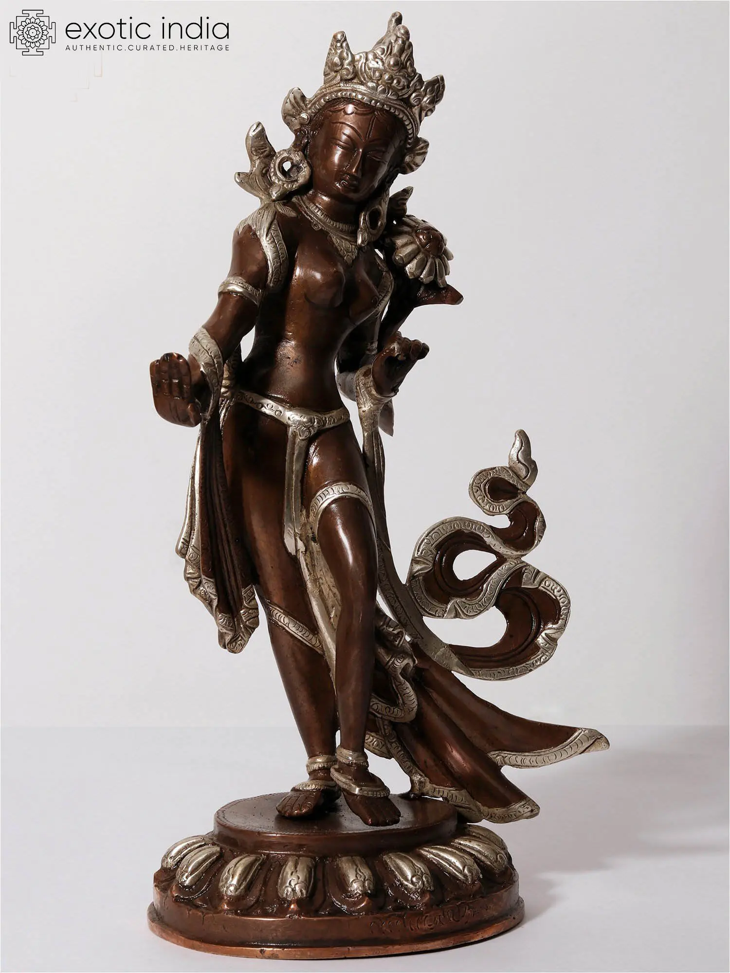 14" (Tibetan Buddhist Deity) Standing Tara with Fine Flowing Garments In Brass | Handmade | Made In India