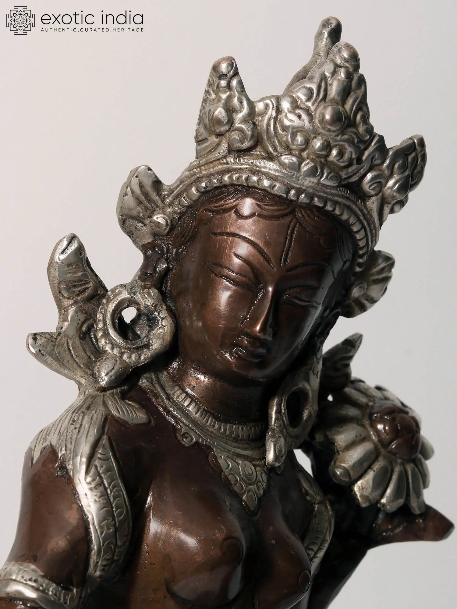 Tara is an important and revered deity in Tibetan Buddhism who appears as a female Bodhisattva. Buddhist monks and followers meditate on the image or deity of Tara to develop some good qualities such as compassion and kindness. Tara is known as the mother of compassion or liberation and is considered the female aspect of Avalokiteshvara (who possesses the compassion of all Buddhas). She manifests in different forms such as Green Tara and White Tara. Green Tara is associated with fearlessness and White Tara, as radiant as the moon, is associated with good health. Tara also appears in red, blue, and yellow colors.