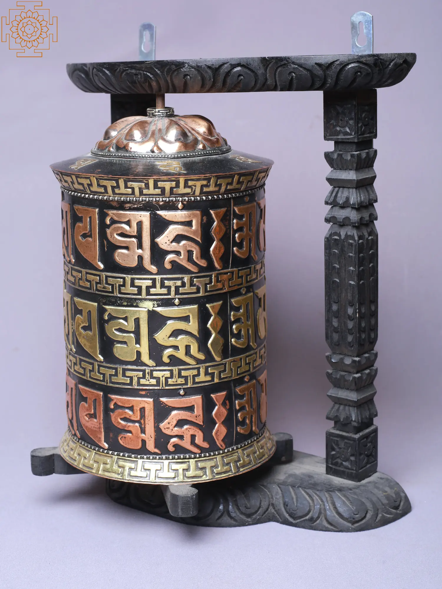 7" Om Mani Padme Hum Prayer Wheel with Parasol | Wall Hanging | Made in Nepal