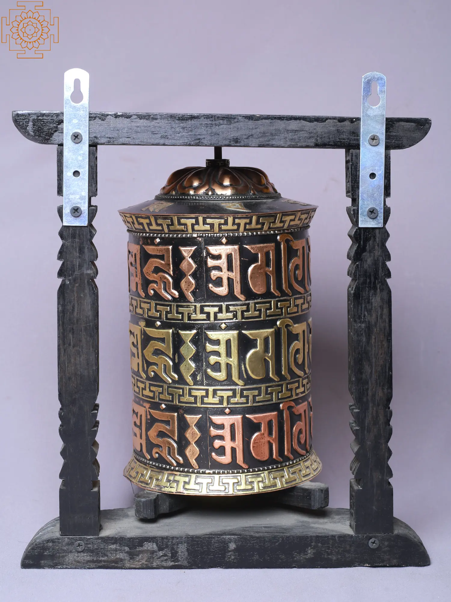 7" Brass Prayer Wheel with Dharma-chakra (Ashtamangala) | Handmade | Made in India
