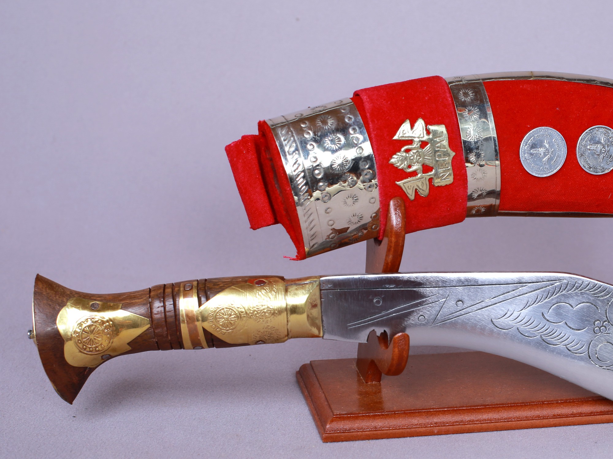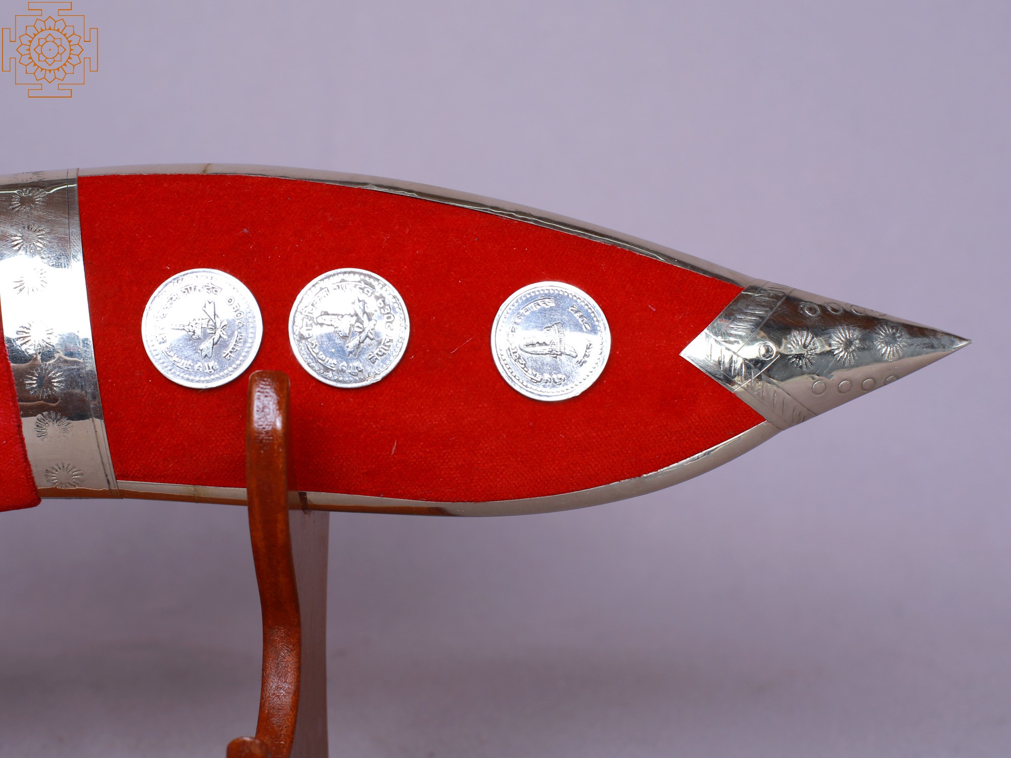 This 14" Velvet Coin Khukuri represents a significant piece of Nepali heritage. Its intricate design, fine materials, and historical significance make it a highly desirable item for collectors and enthusiasts alike. This stunning Khukuri is not merely a decorative object; it is a living testament to centuries of tradition and skilled craftsmanship, a remarkable artifact that embodies the spirit of Nepal. Add a piece of Nepalese history to your collection—a unique and striking addition that will be treasured for generations to come.