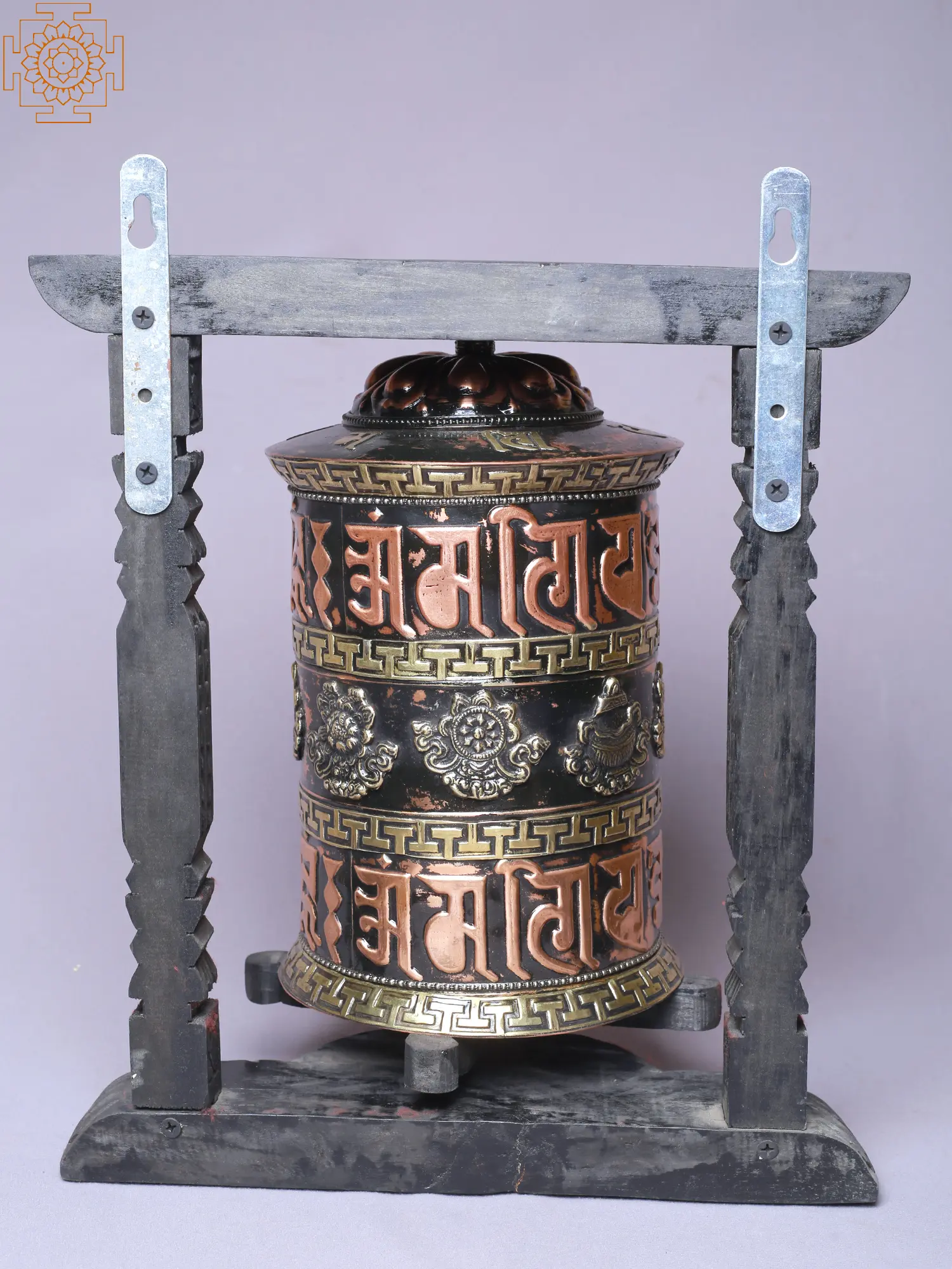 7" Brass Prayer Wheel with Dharma-chakra (Ashtamangala) | Handmade | Made in India