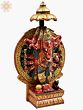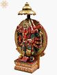 This exceptional statue portrays Ganesha seated on a regal throne, a symbol of his sovereign power and his position as the chief of the Gana, celestial attendants. The throne itself is intricately carved and adorned, reflecting the grandeur and majesty of the divine lord. Above Ganesha, an elegant umbrella-like canopy further enhances the regal aura, suggesting the protection and divine shelter he offers to his devotees. The entire composition is brought to life with vibrant colors, meticulously hand-painted to highlight every detail, from the ornaments adorning Ganesha's many arms to the delicate patterns on the throne and the radiating halo behind him.