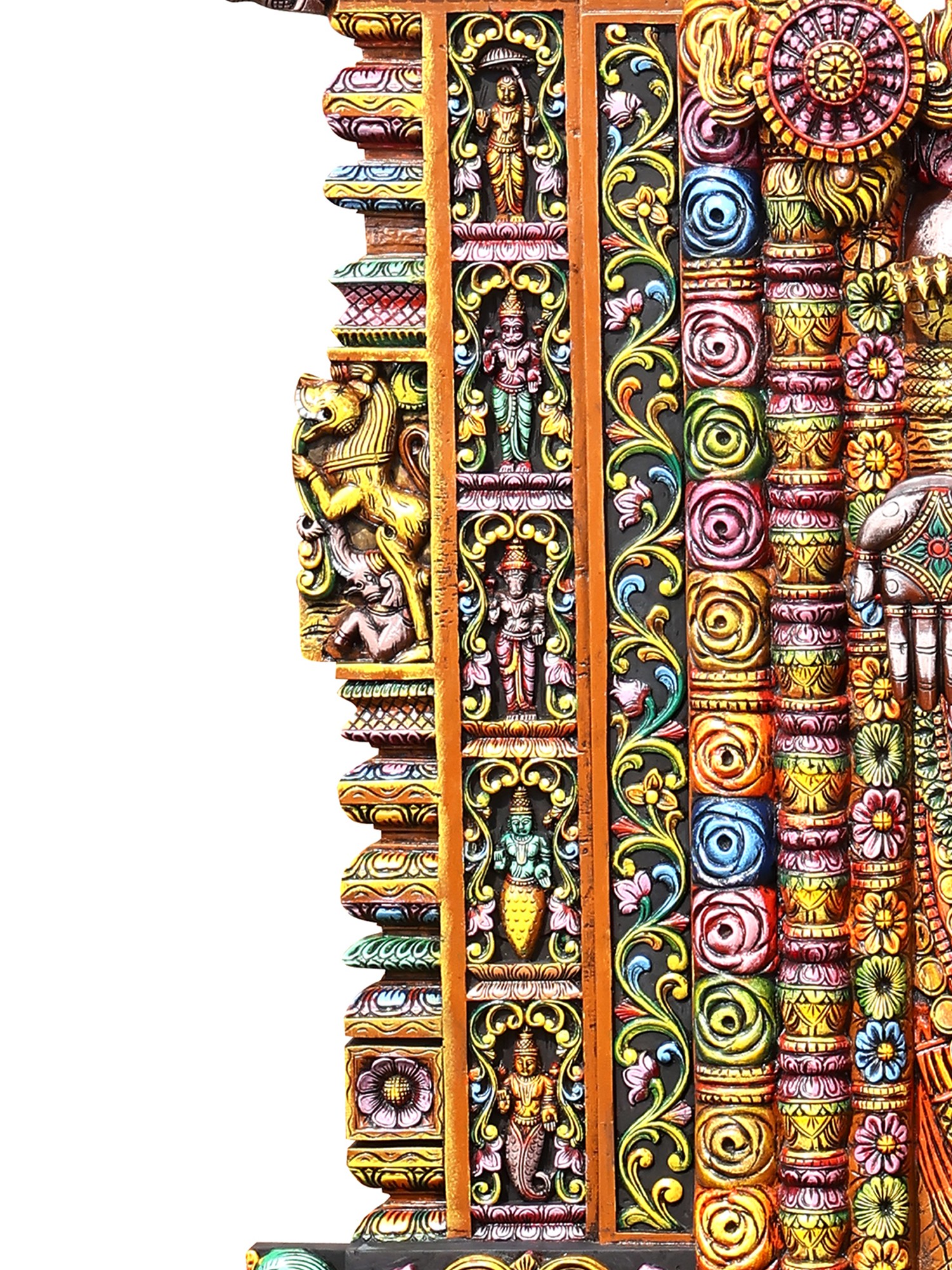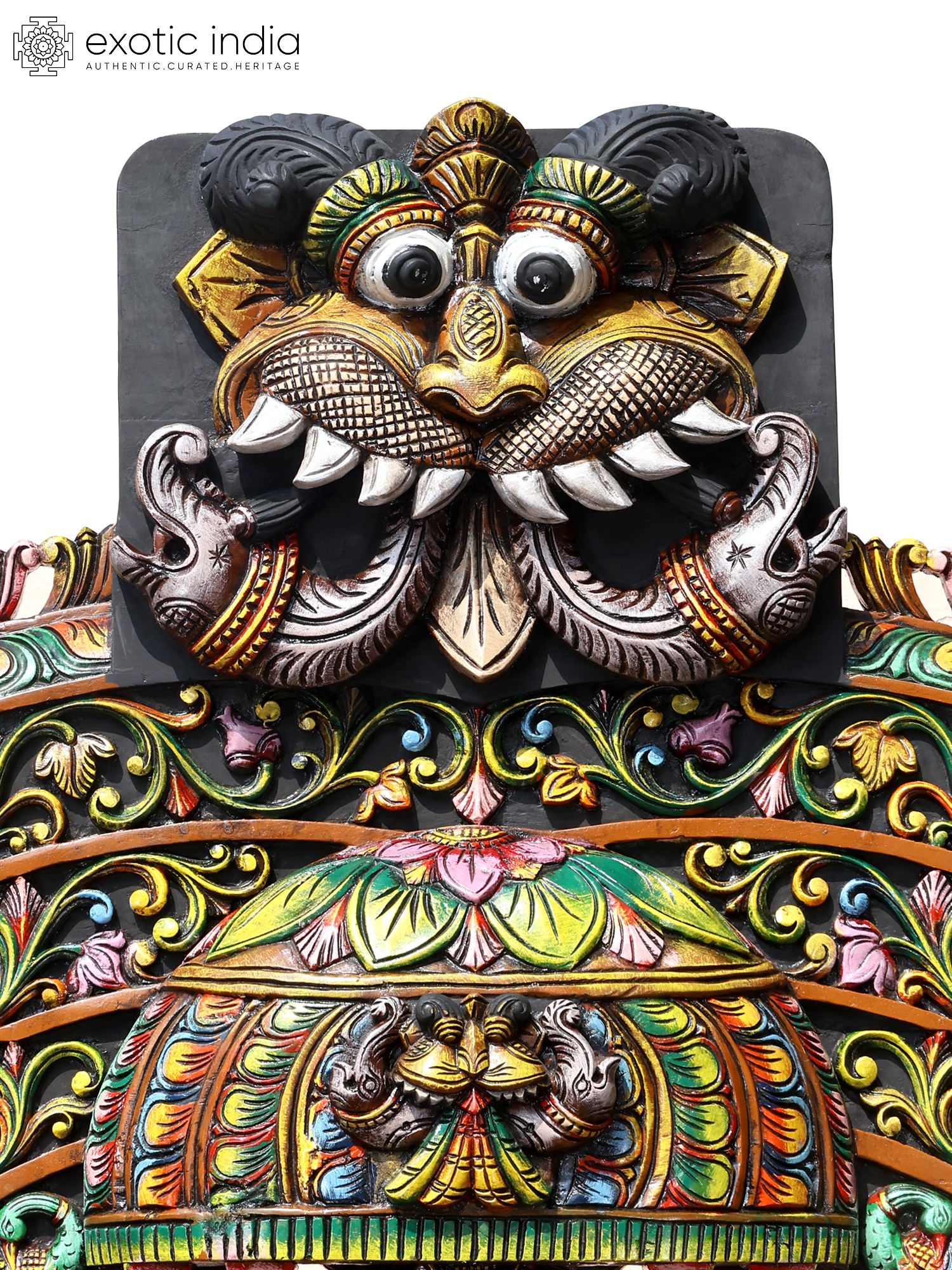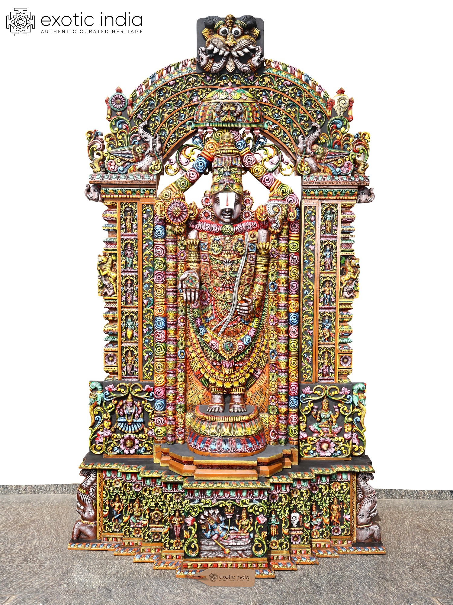 144" Super Large Colorful Lord Tirupati Balaji (Venkateshwara) with Kirtimukha Arch | Handmade Wood Sculpture