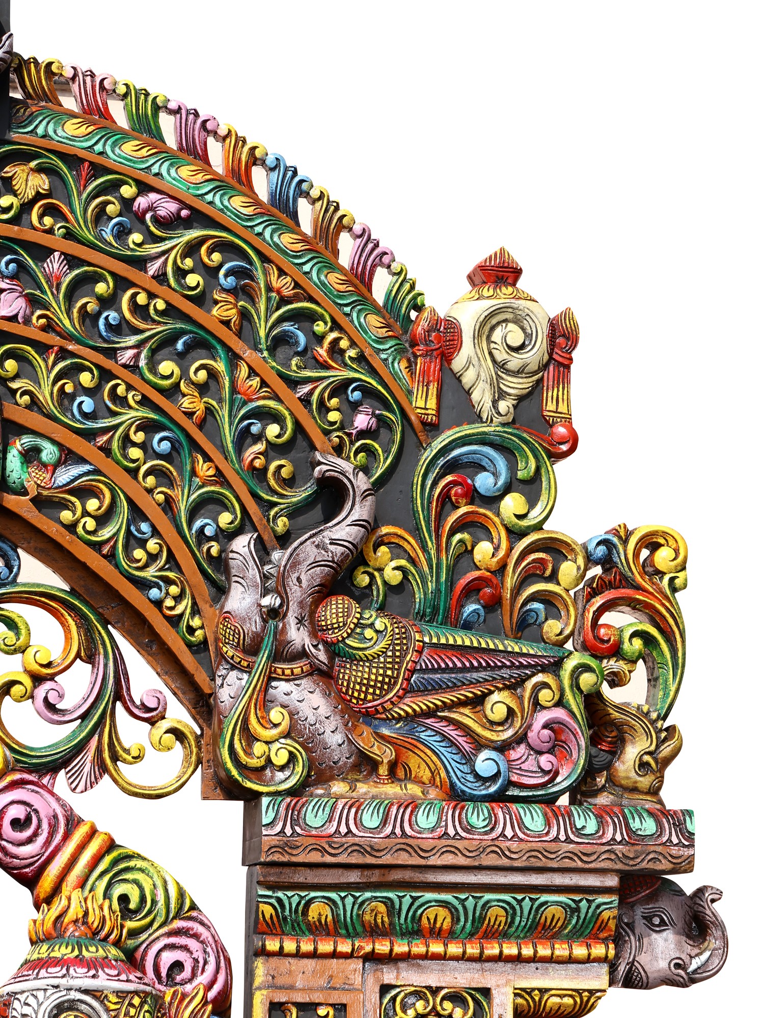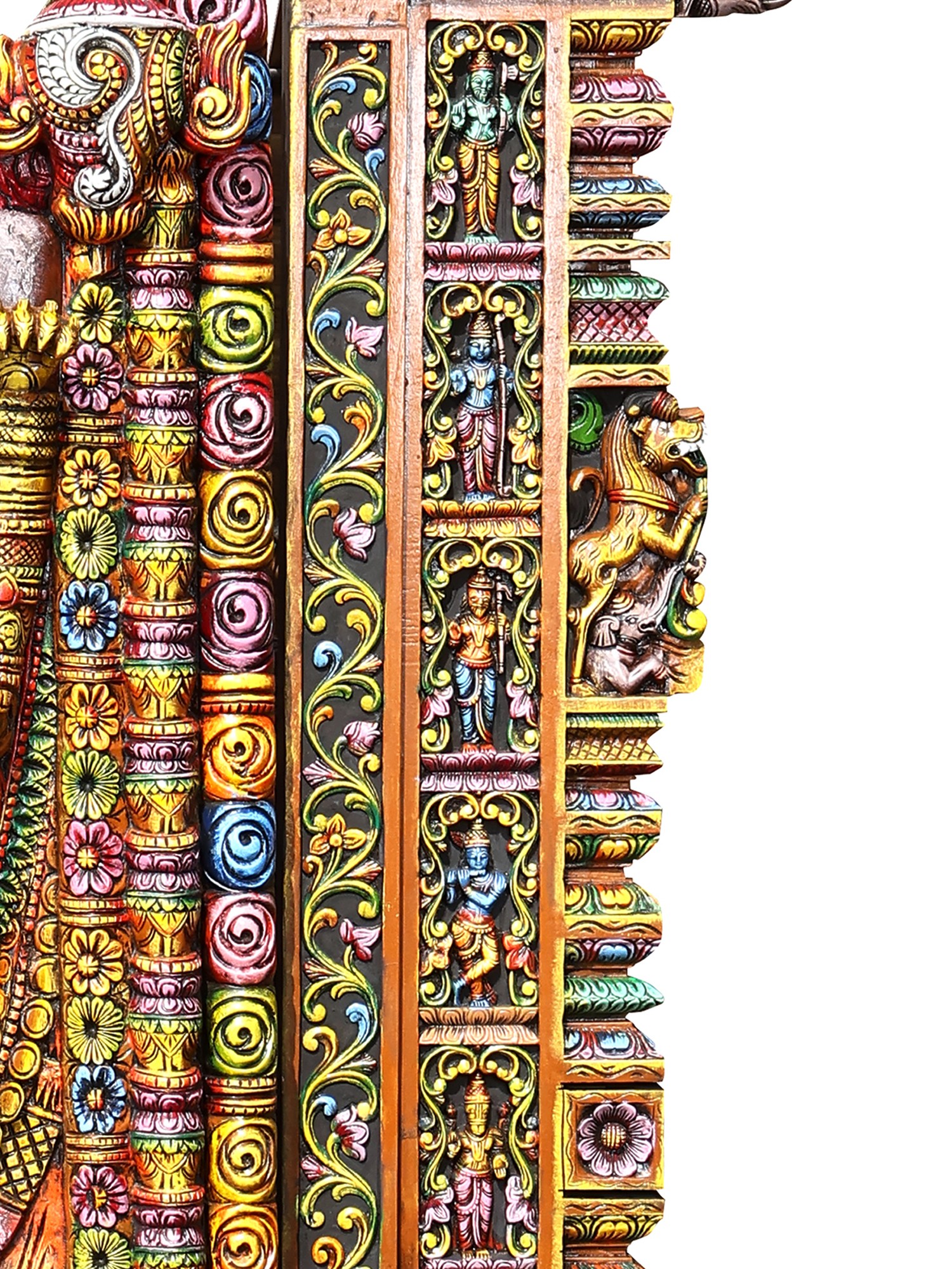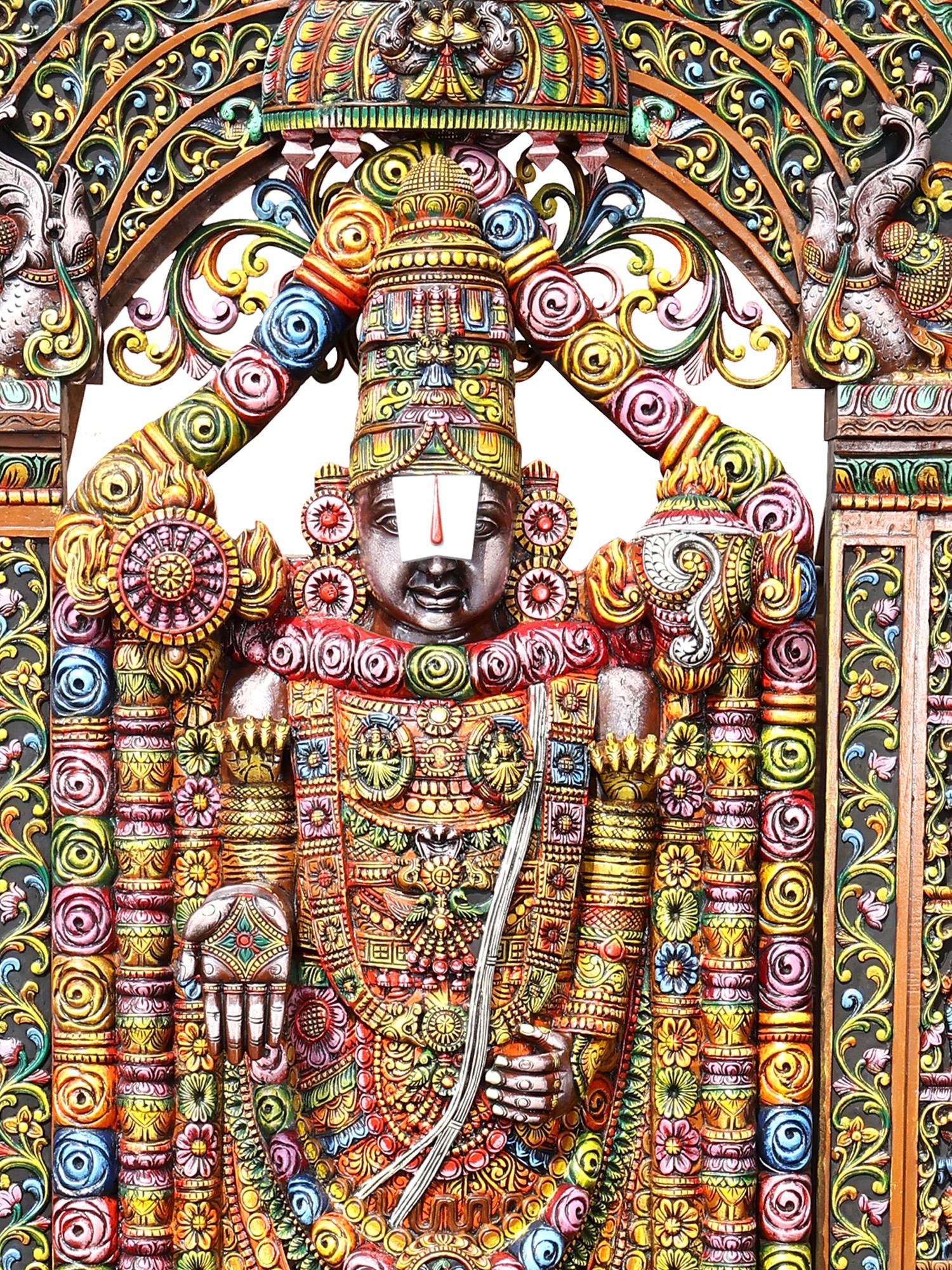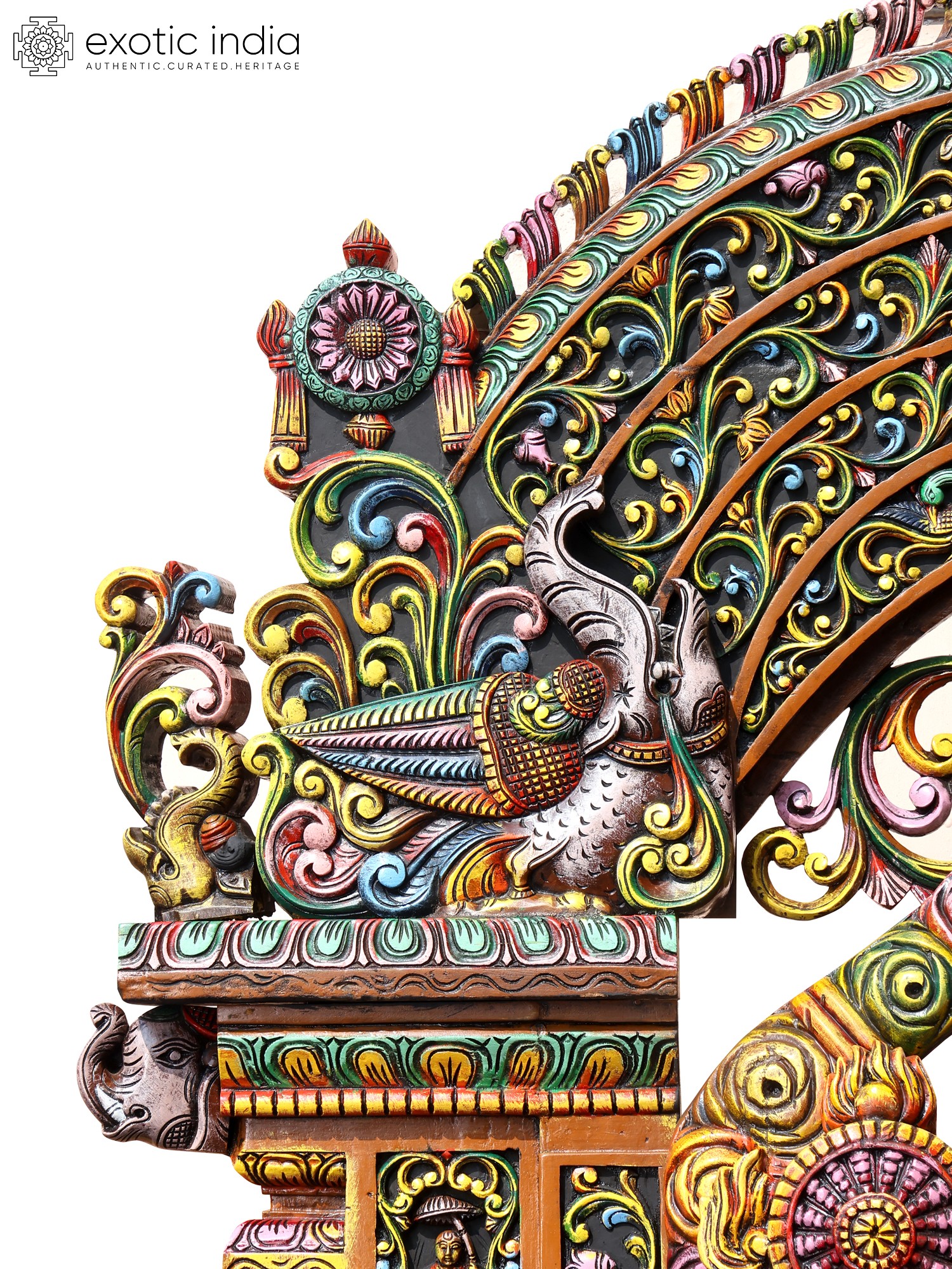 144" Super Large Colorful Lord Tirupati Balaji (Venkateshwara) with Kirtimukha Arch | Handmade Wood Sculpture