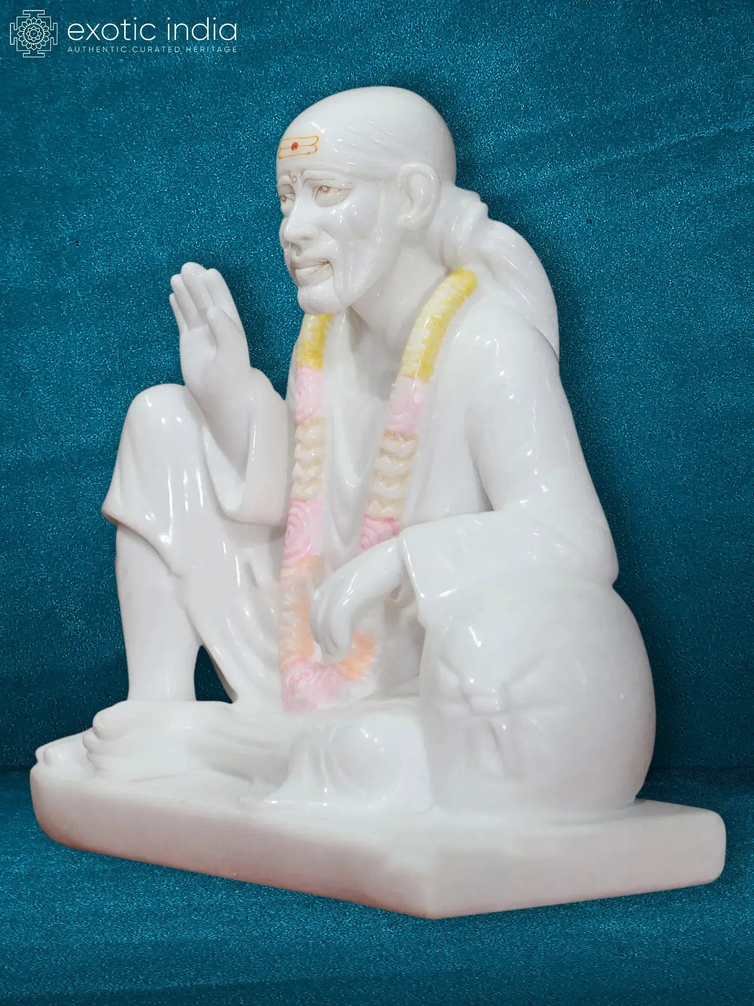 15" Beautifully Detailed Sai Baba Sculpture | White Makrana Marble Statue