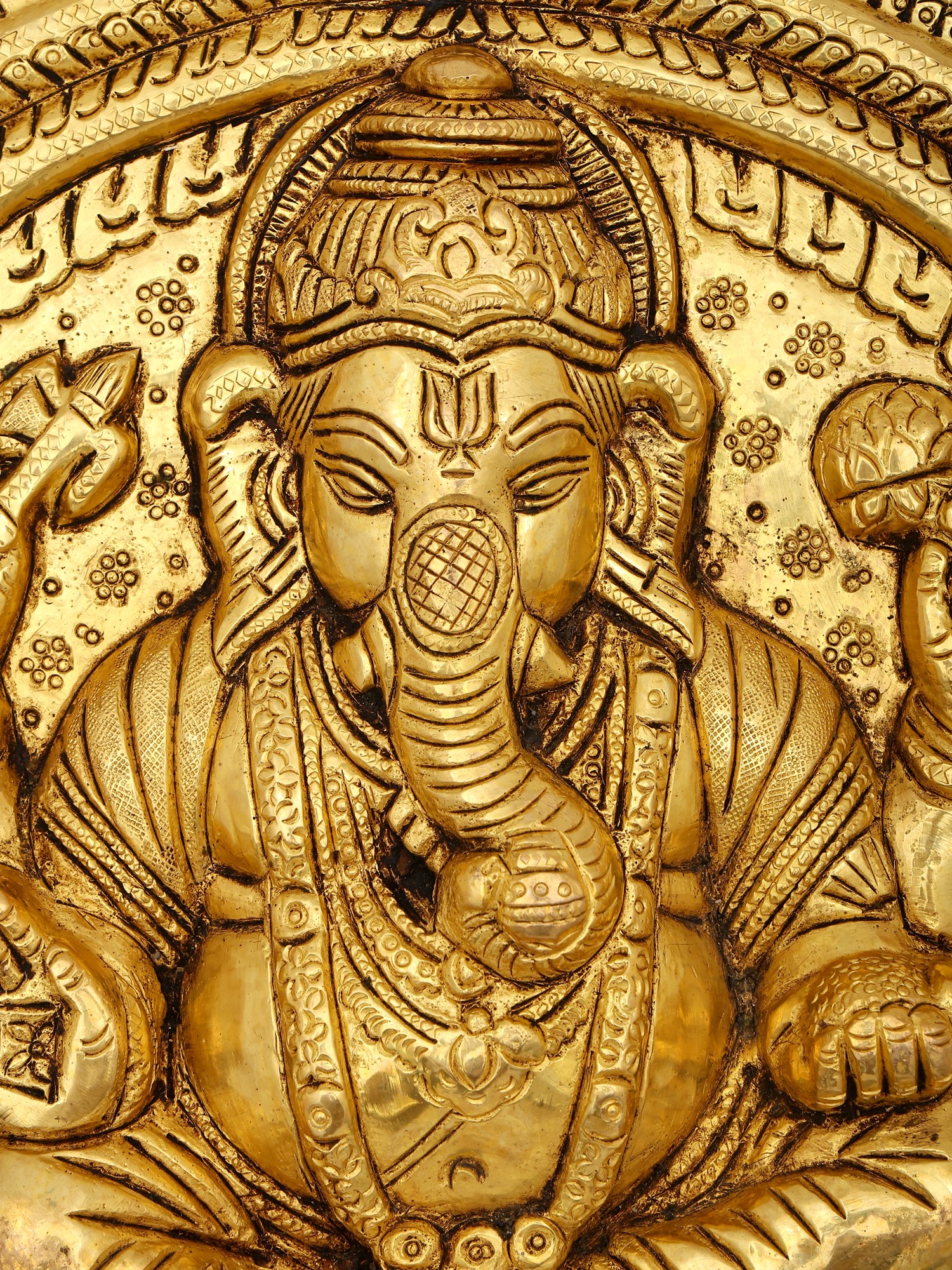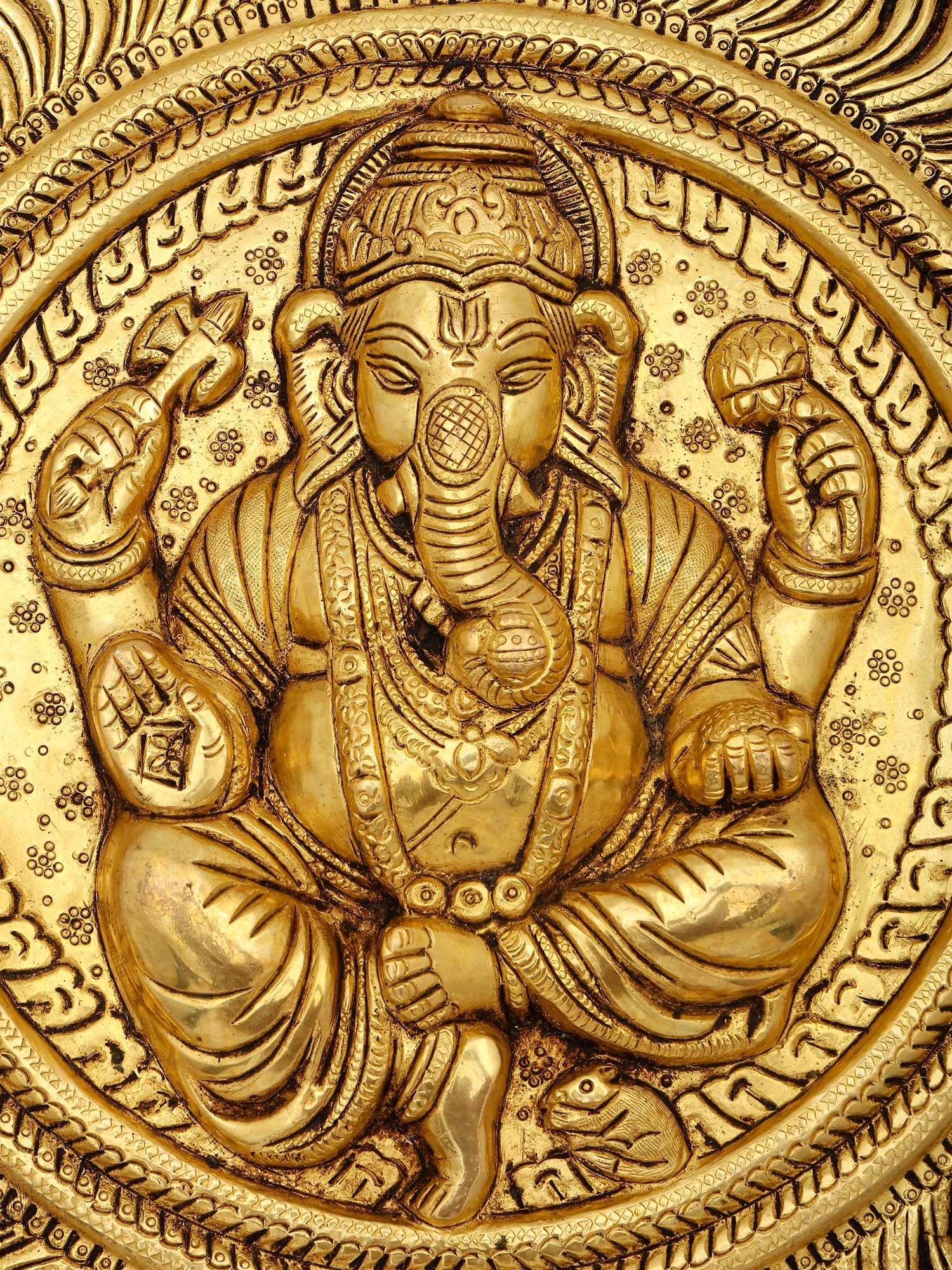 11" Lord Ganesha Wall Hanging Plate In Brass | Handmade