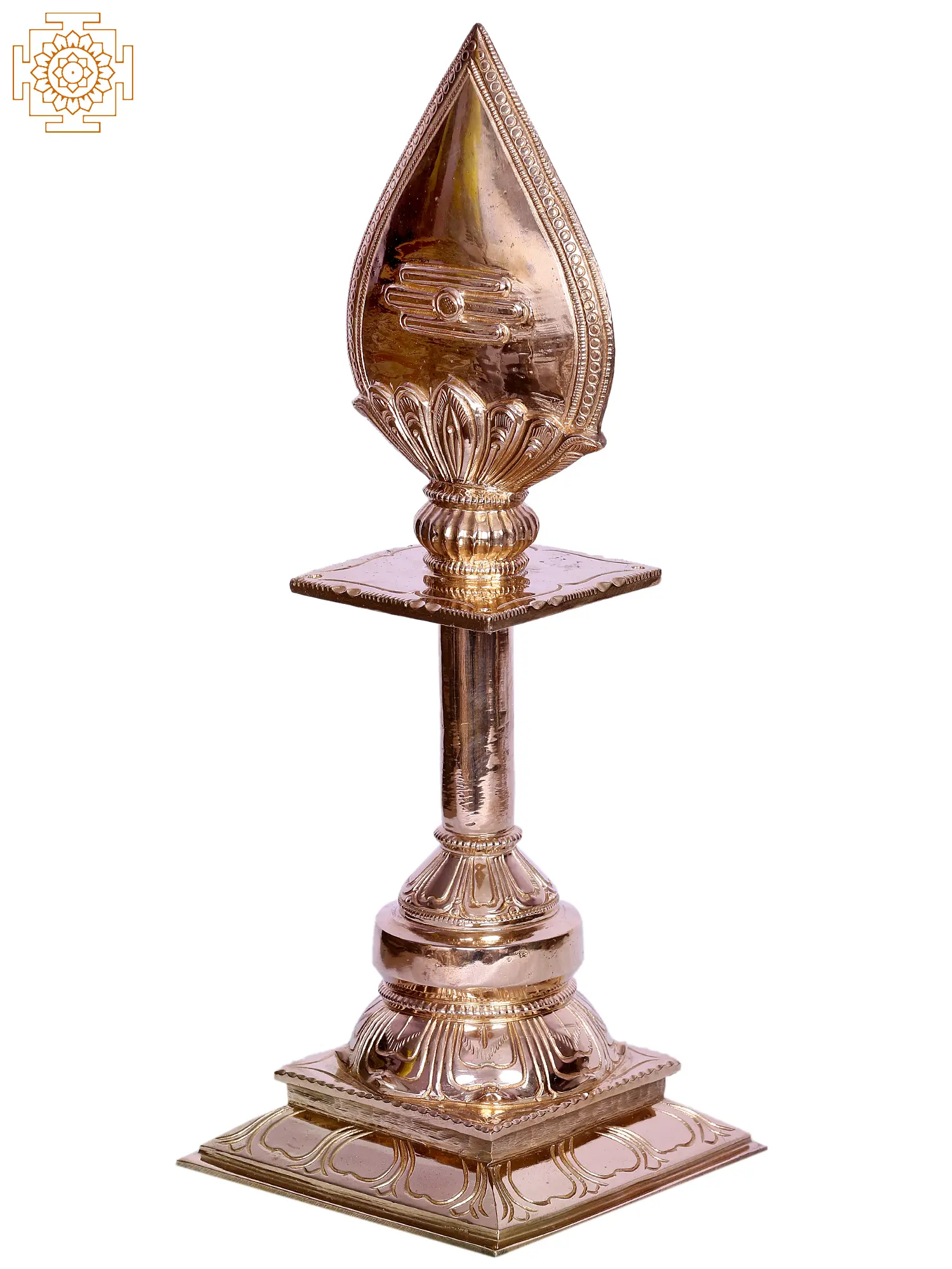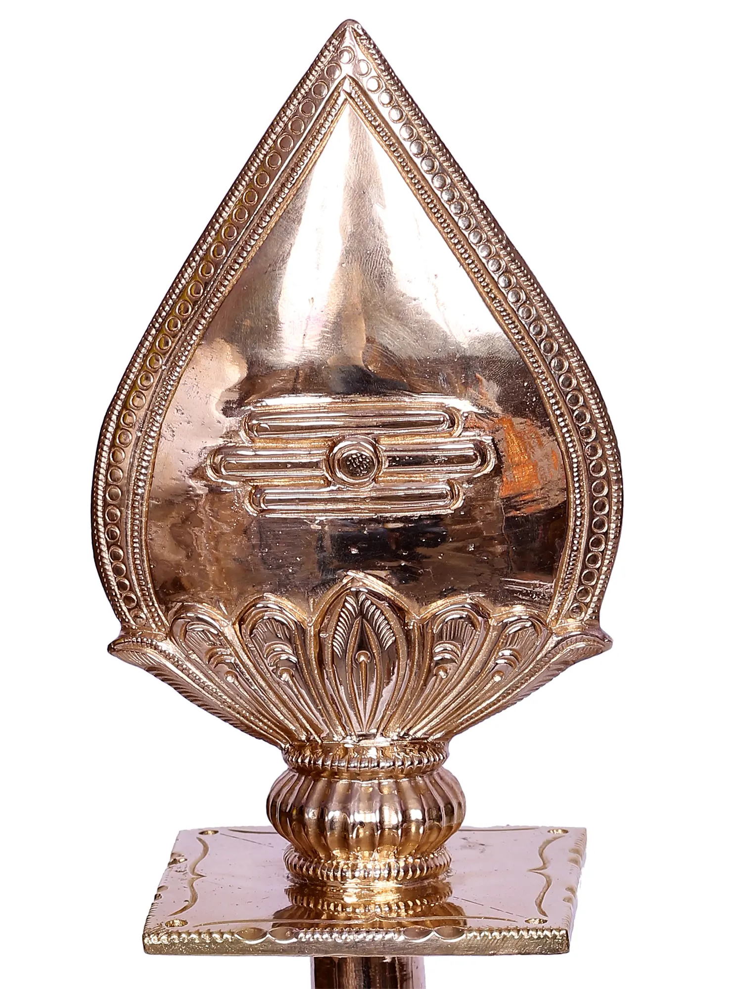 Lord Murugan's Vel is supposed to be a gift from his mother, Goddess Parvati. The Tripundra sign on the head of this bronze Vel depicts the combined blessings of Shiva and Shakti given to their beloved son. There is a beautiful Kalash on which a lotus is placed and the Vel head stands on top of this arrangement signifying the sacred properties of the weapon. The Vel has been a symbol of grandeur and strength since Lord Murugan led the army of Gods that vanquished innumerable demons to establish Dharma. Lord Murugan's followers have immense faith in the vel because they consider it to be his surrogate.