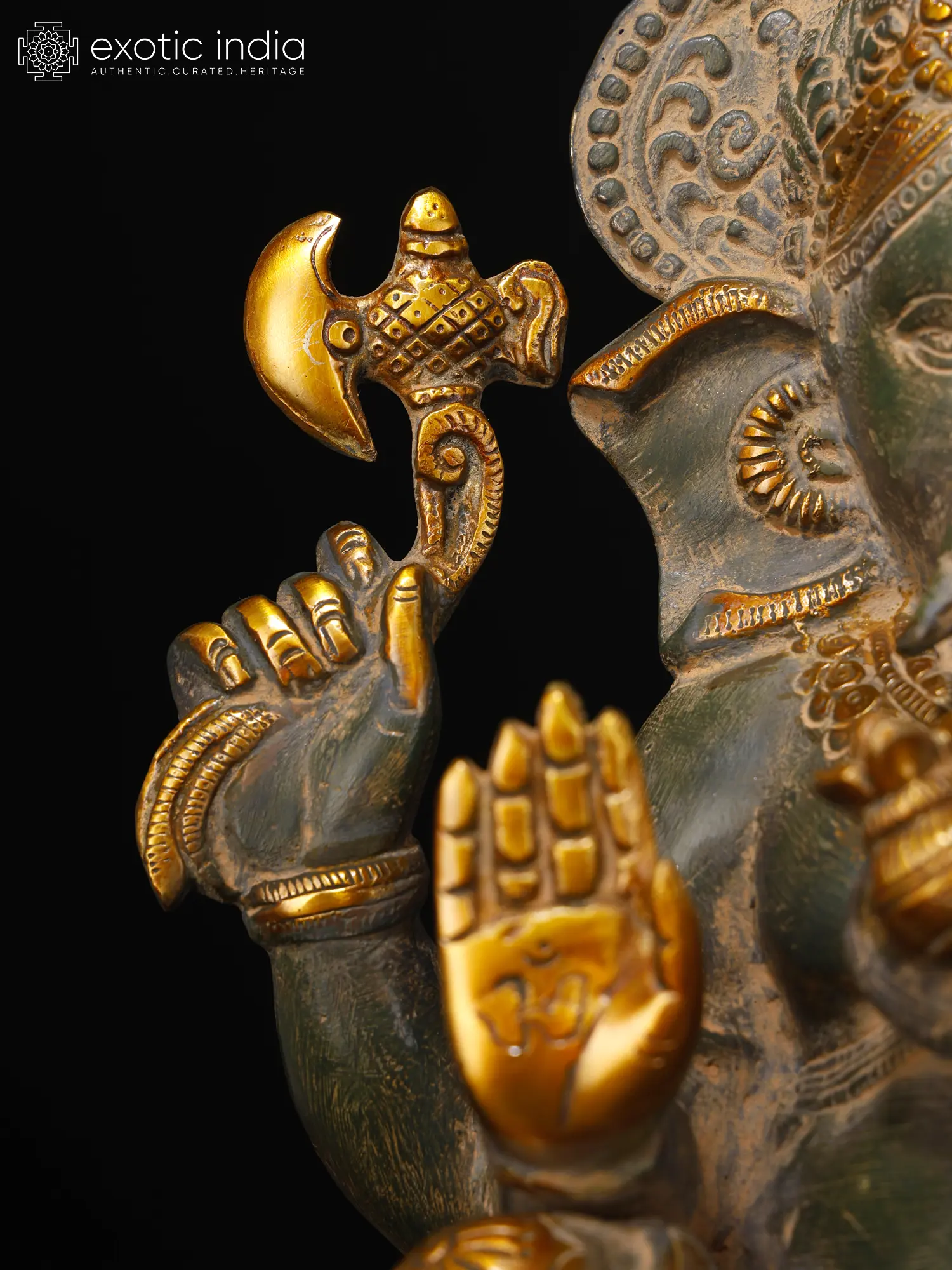 15" Chaturbhuja Ashirwad Ganesha Wearing a Majestic Crown In Brass | Handmade | Made In India