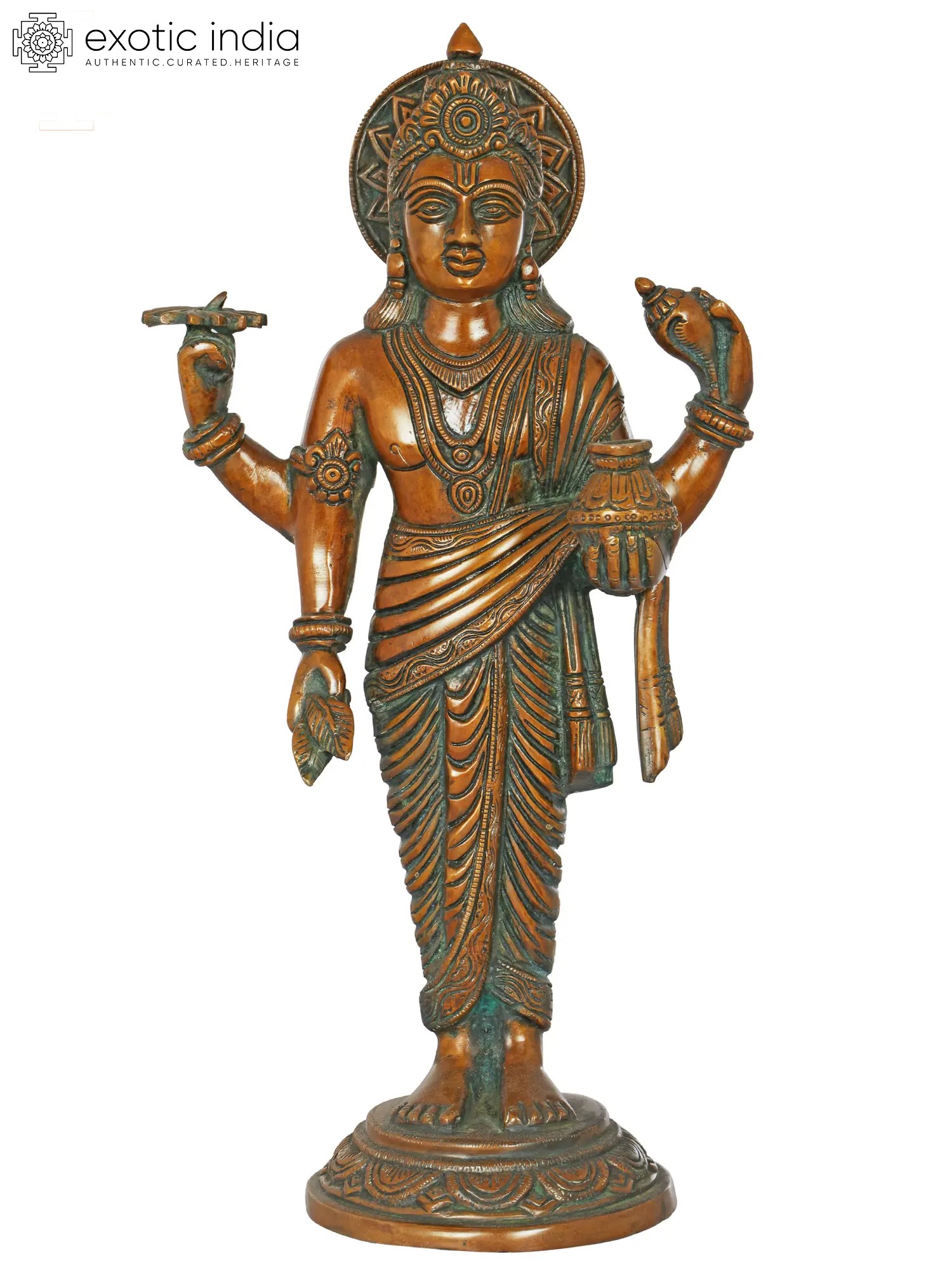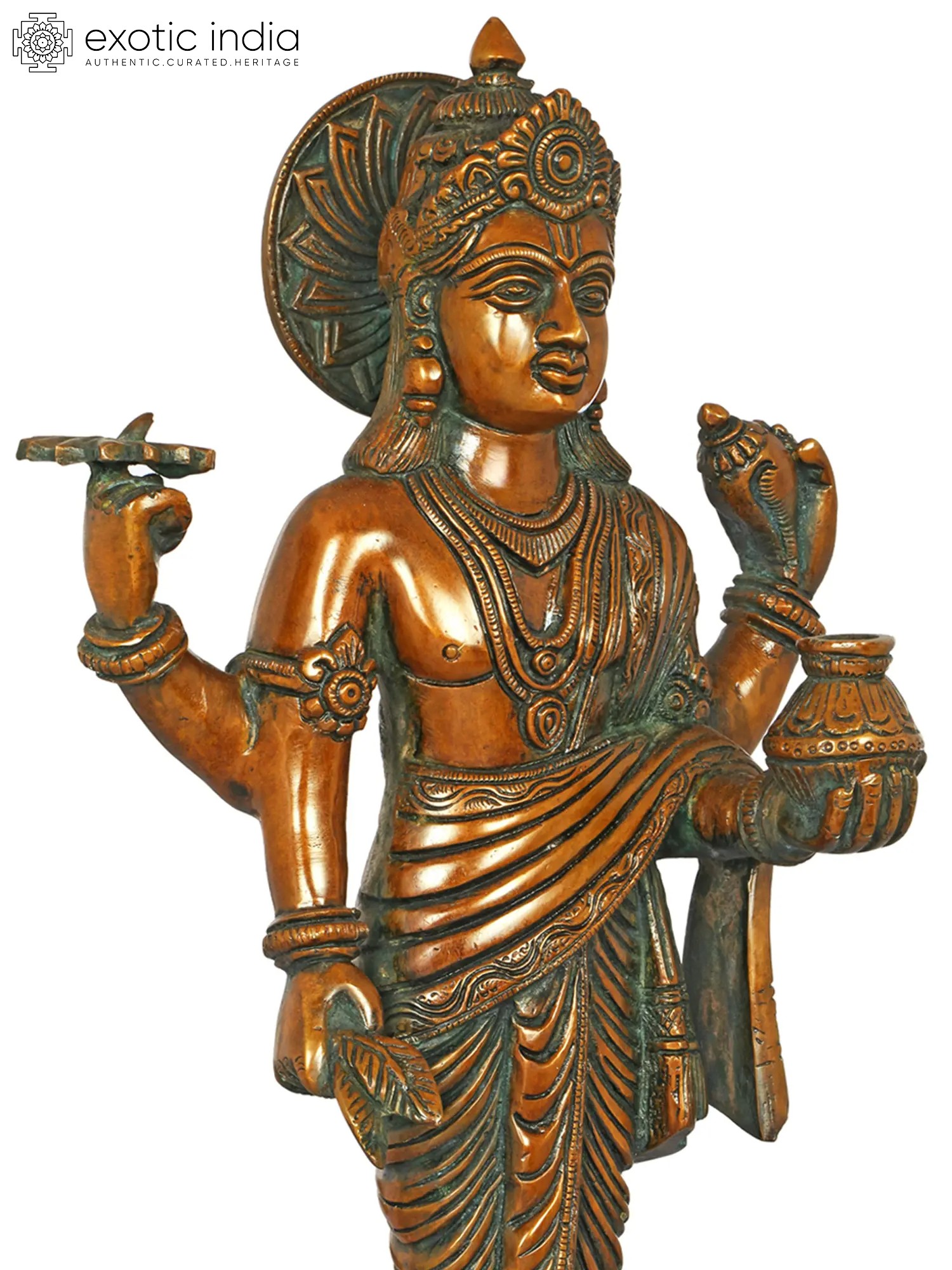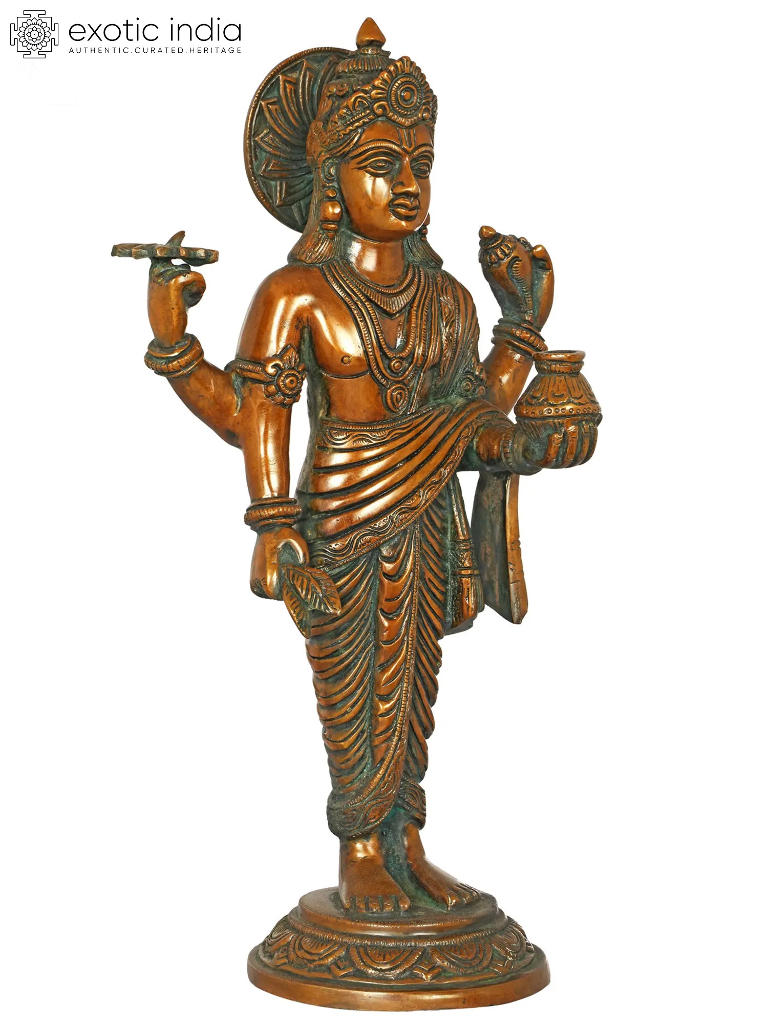 15" Dhanvantari Brass Statue - The Physician of the Gods (Holding the Vase of Immortality and Herbs)