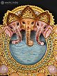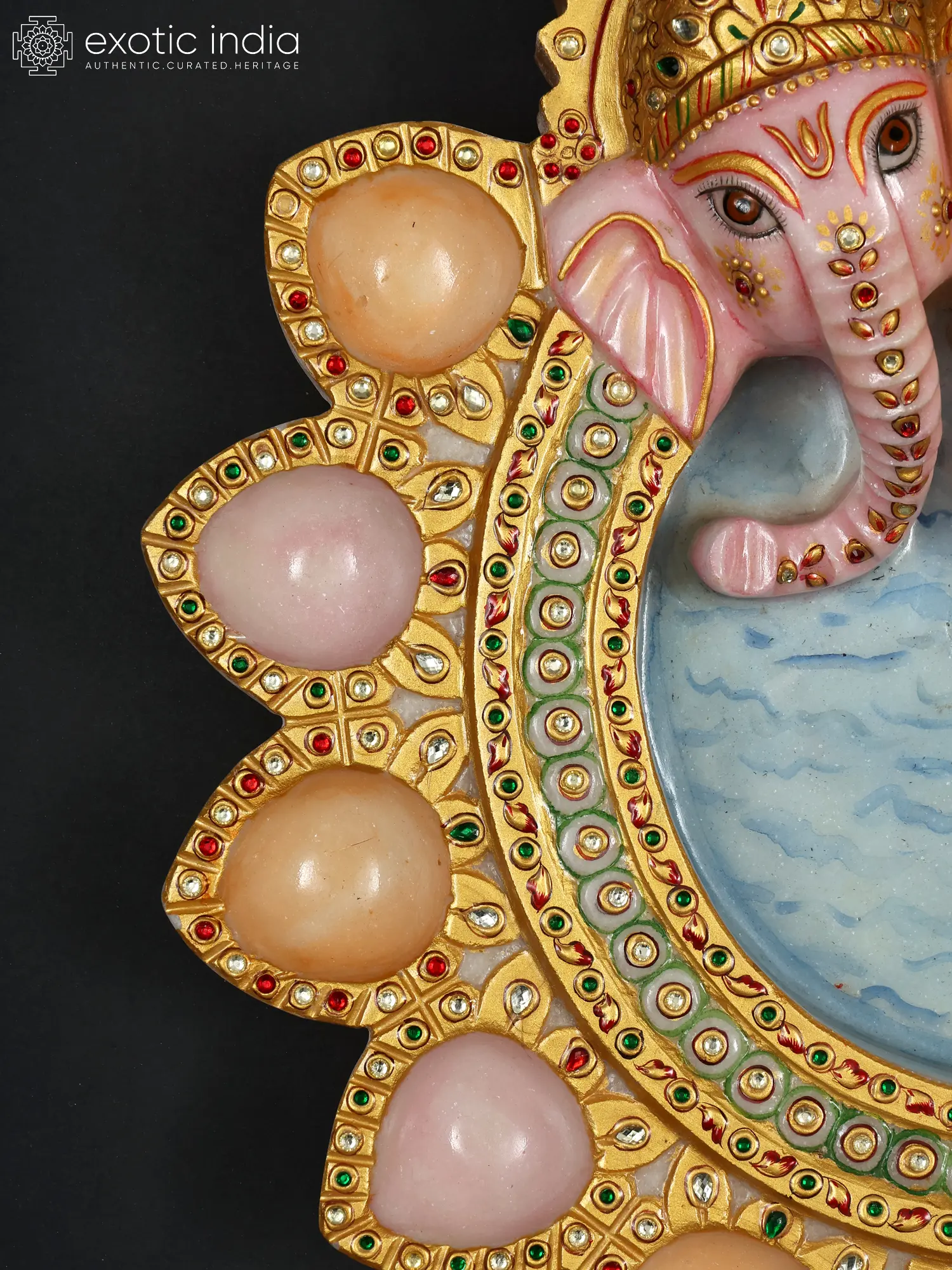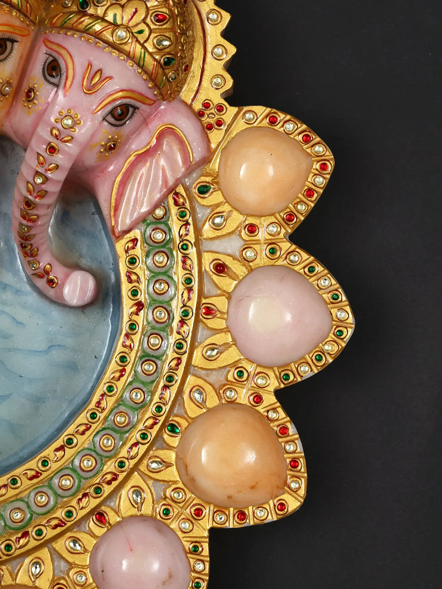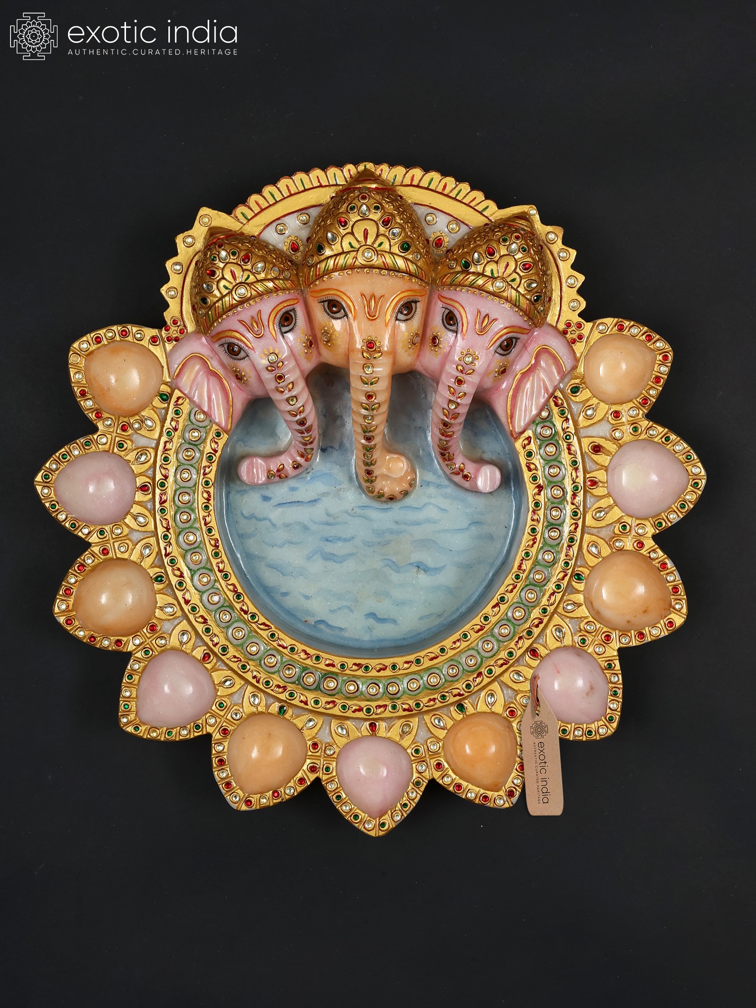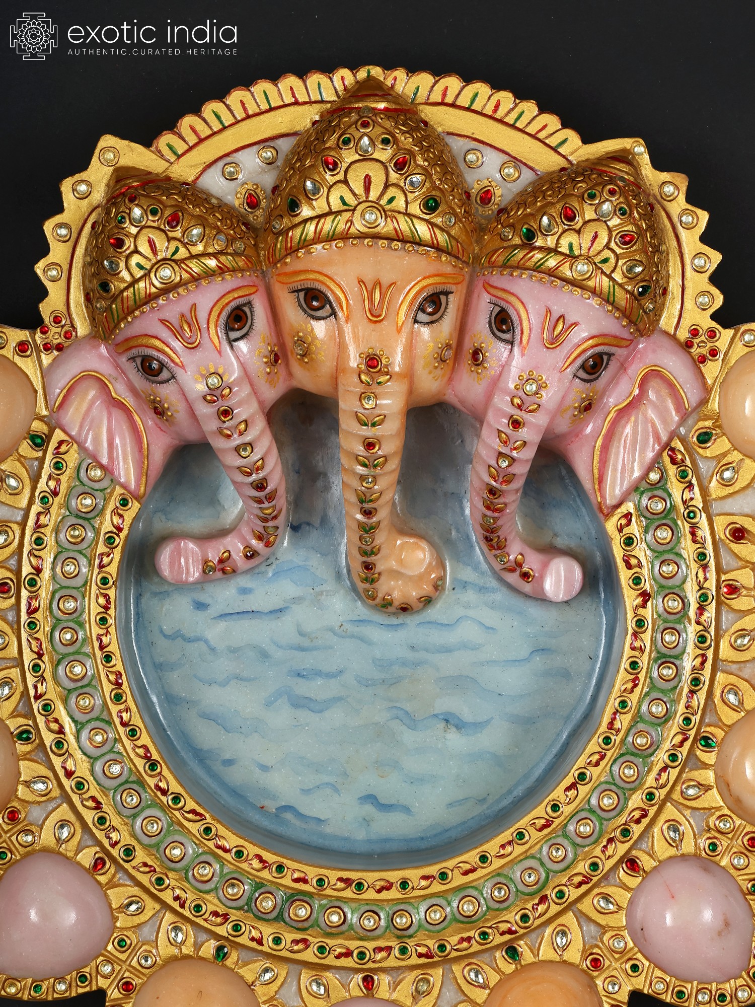 15" Divine Three-Faced Ganesha Urli with Diya | Marble with Stone Work