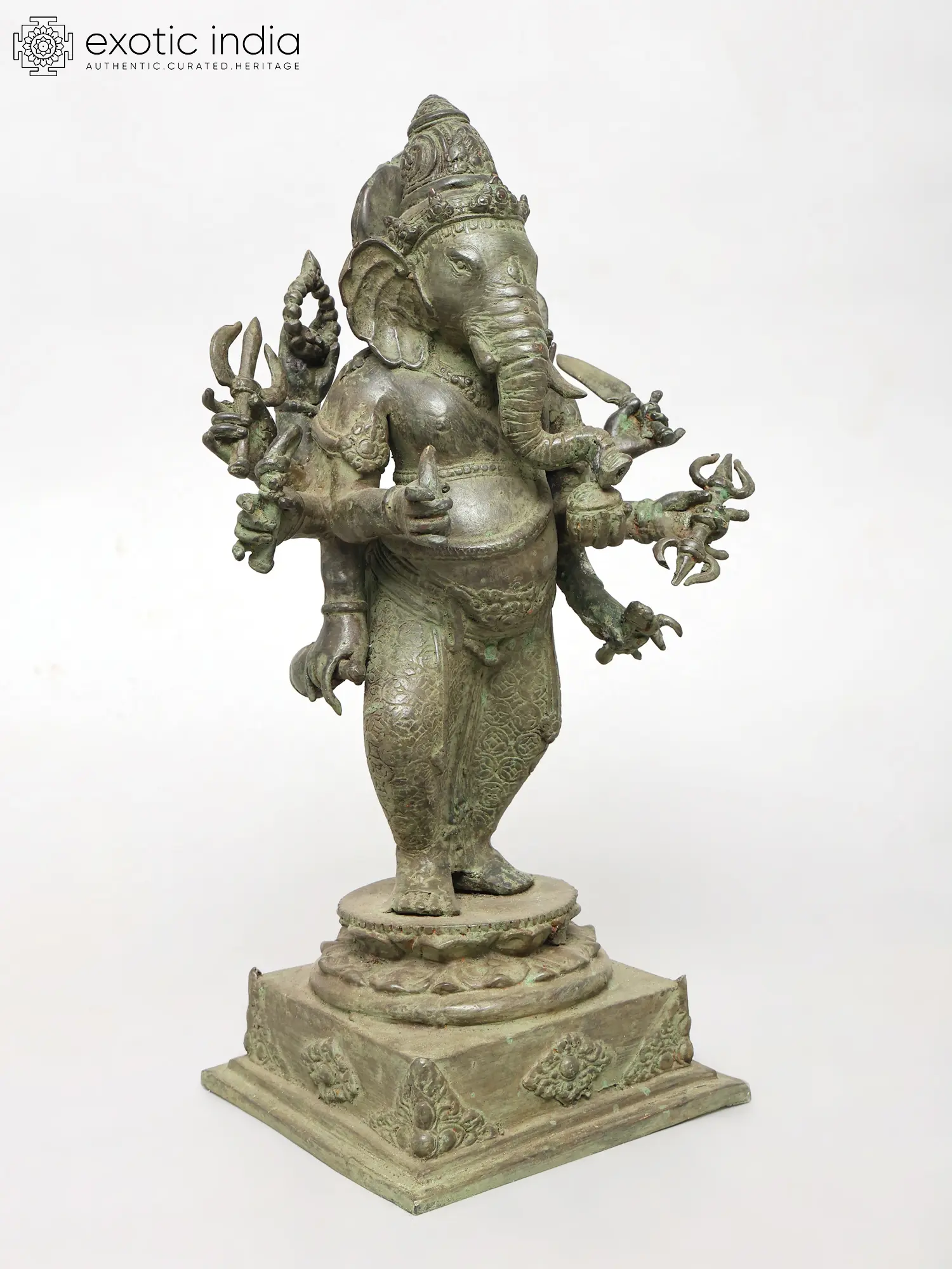 16" Lord Ganesha Statue Granting Abhaya in Brass | Handmade Idols | Made in India