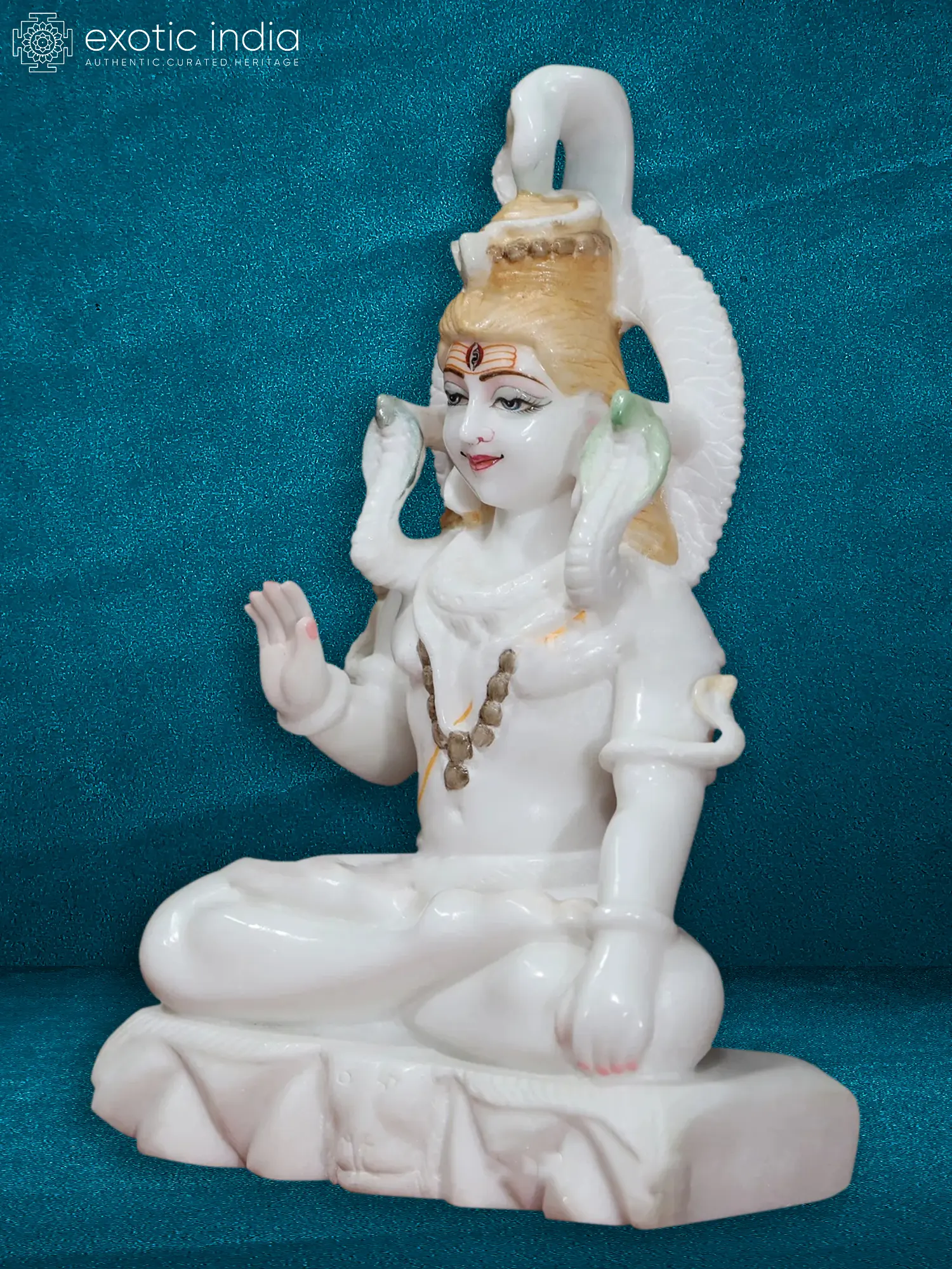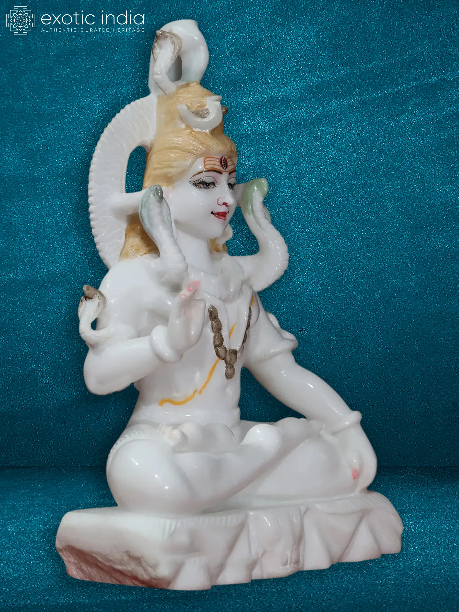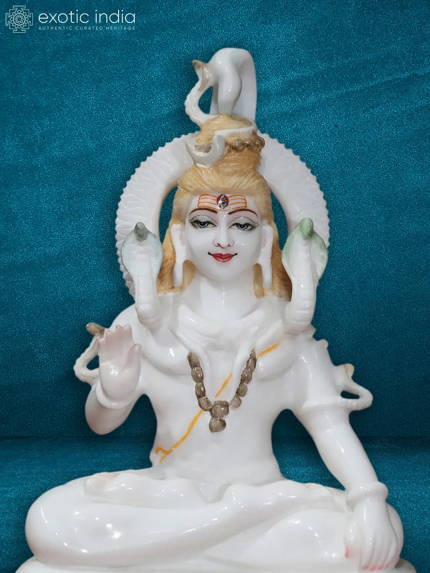 12" Nandi Waiting of Lord Shiva | White Makrana Marble Sculpture