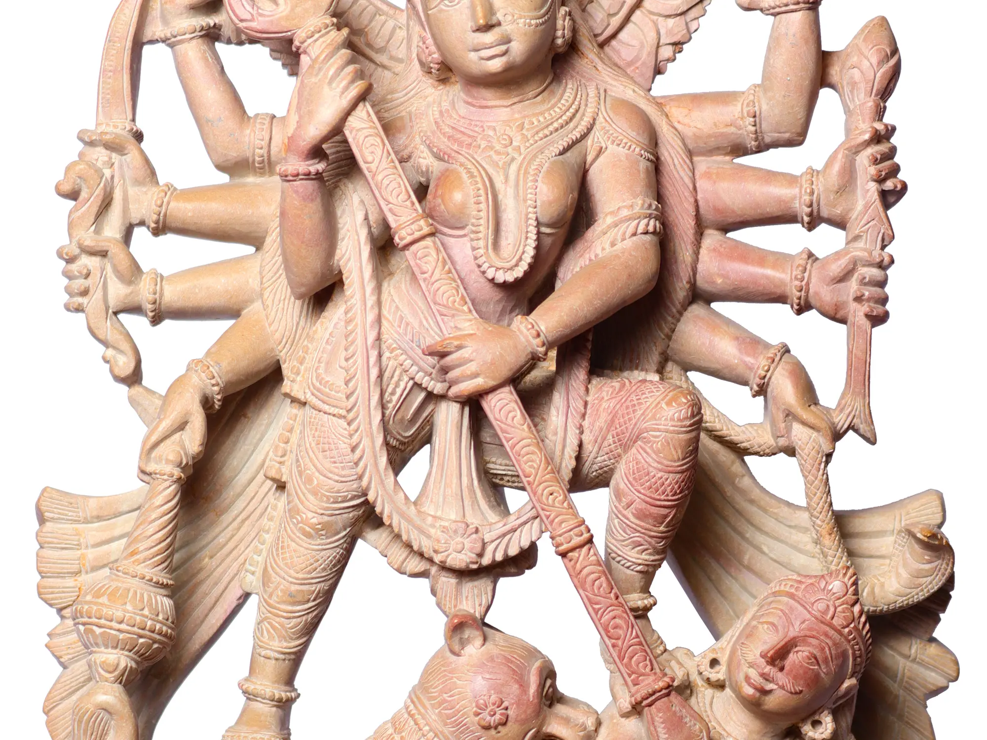 21" Goddess Durga Killing Demon Mahishasura | Sand Stone Statue | Made in Orissa