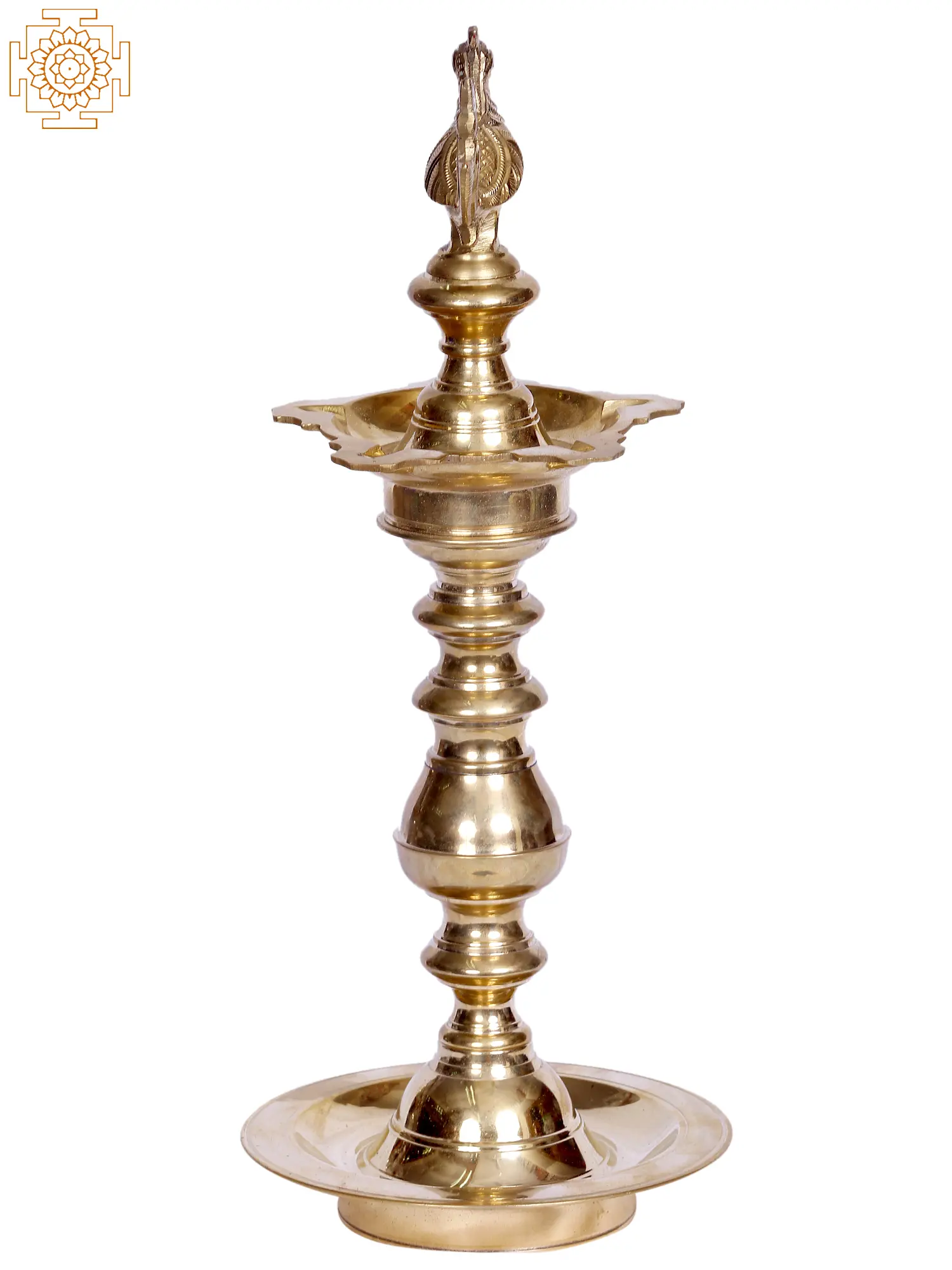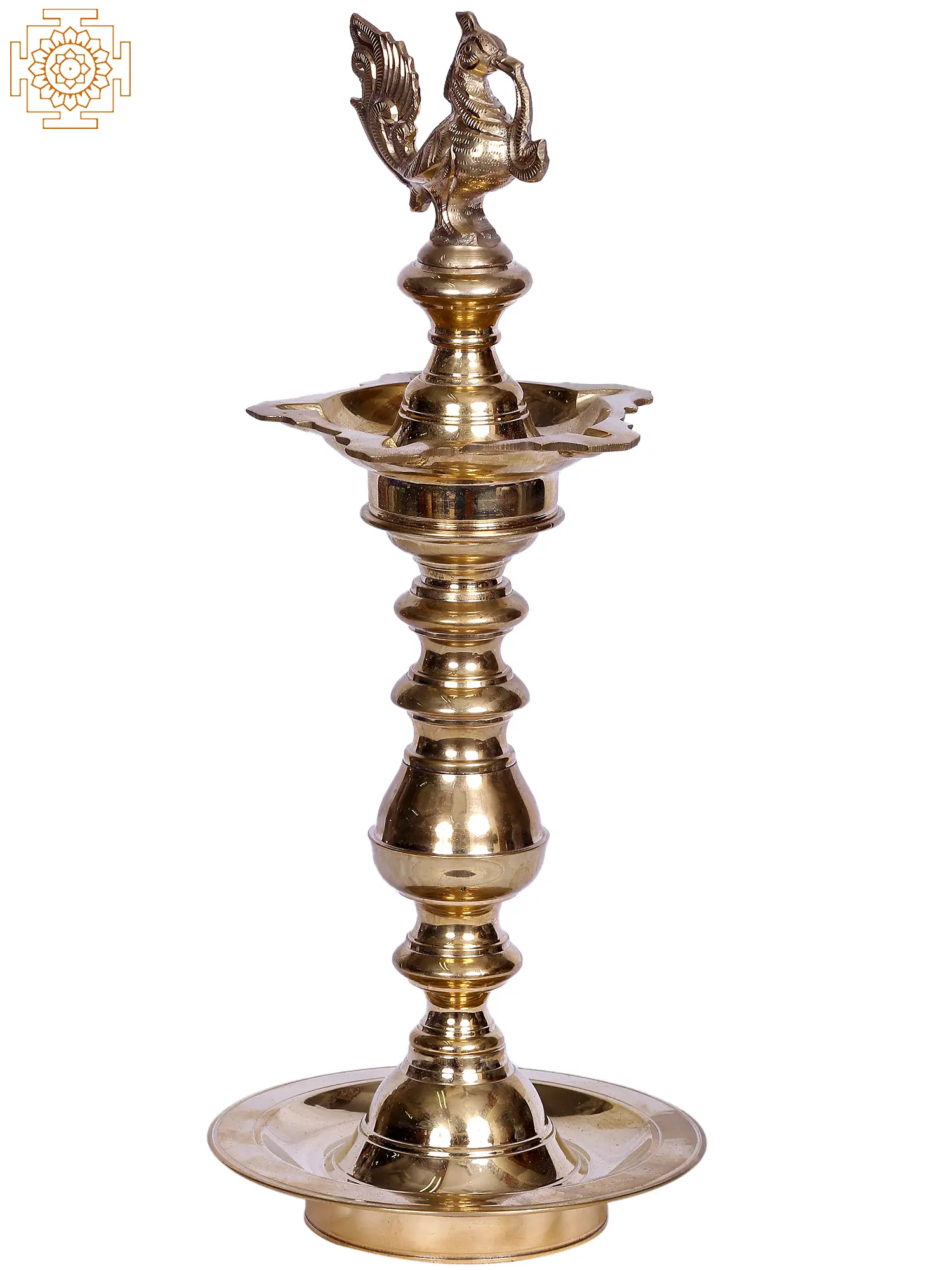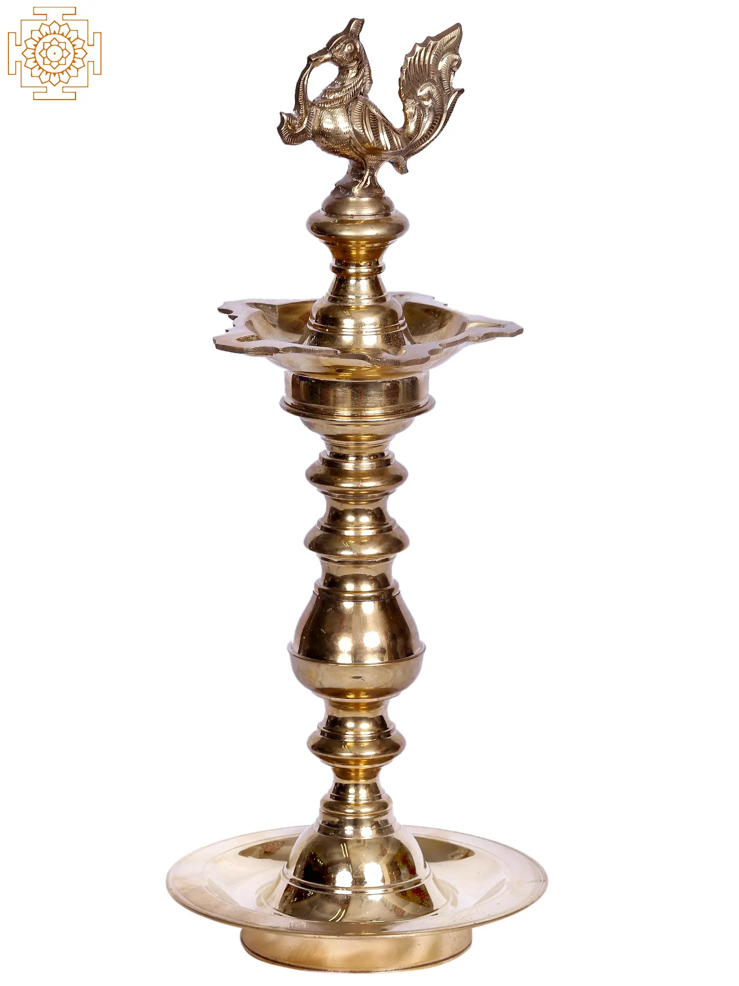 The Kuthu Vilakku, or Seven Wicks Peacock Oil light, is a traditional South Indian columnar lamp that is used in homes and temples. It is constructed of brass and contains five wicks, one for each aspect of human life: body, mind, intellect, ego, senses, emotions, and soul. The renowned Anam (peacock) embodies elegance and finesse. The lamp's concept is to sprinkle elegance throughout the lamp's light. This lamp, with its sleek and robust stand, signifies self-illumination and harmony, spiritual enlightenment, and the manifestation of divine traits in one's life.