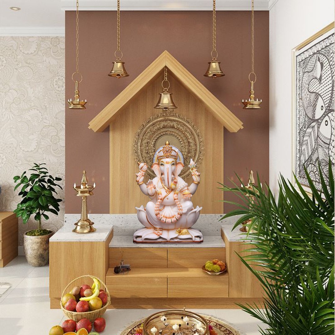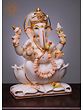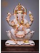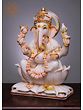 15" Lord Ganesha Seated on Lotus | Handmade | White Marble Ganesh Statue | Mahaganpati Statue | Siddhi Vinayak