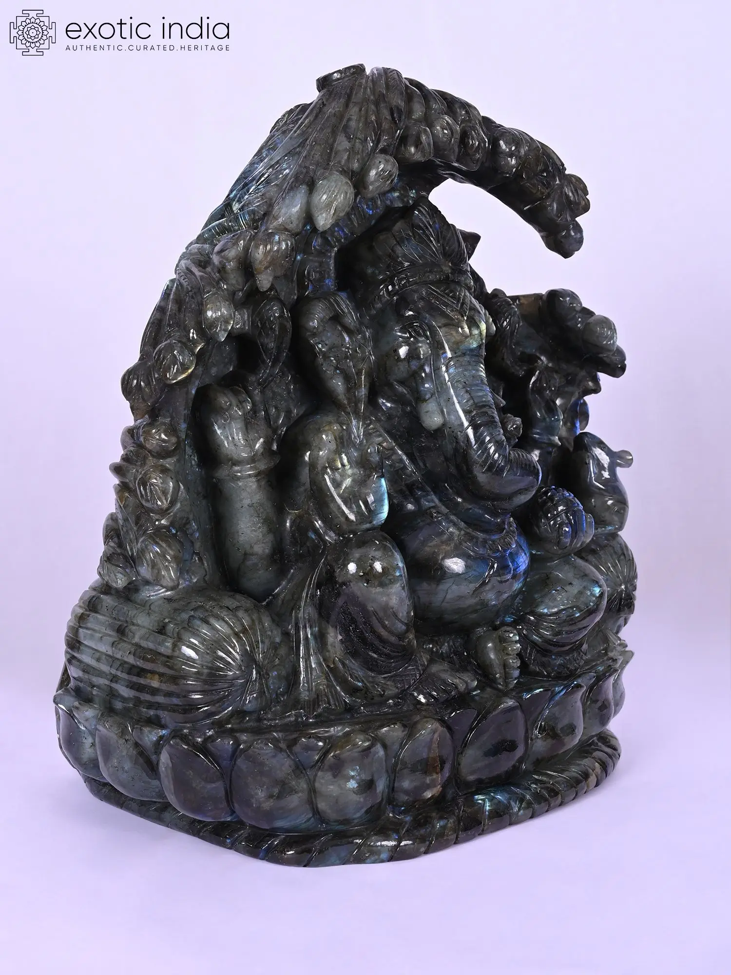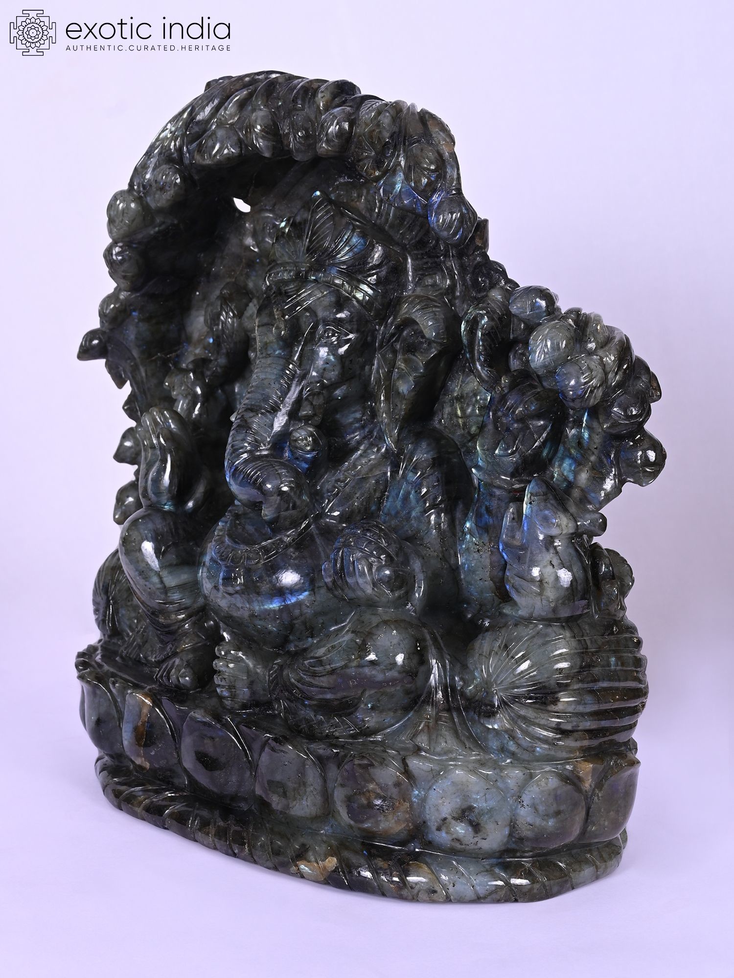 12" Chaturbhuj Lord Ganesha Statue Holding Modak | Orissa Stone Sculpture