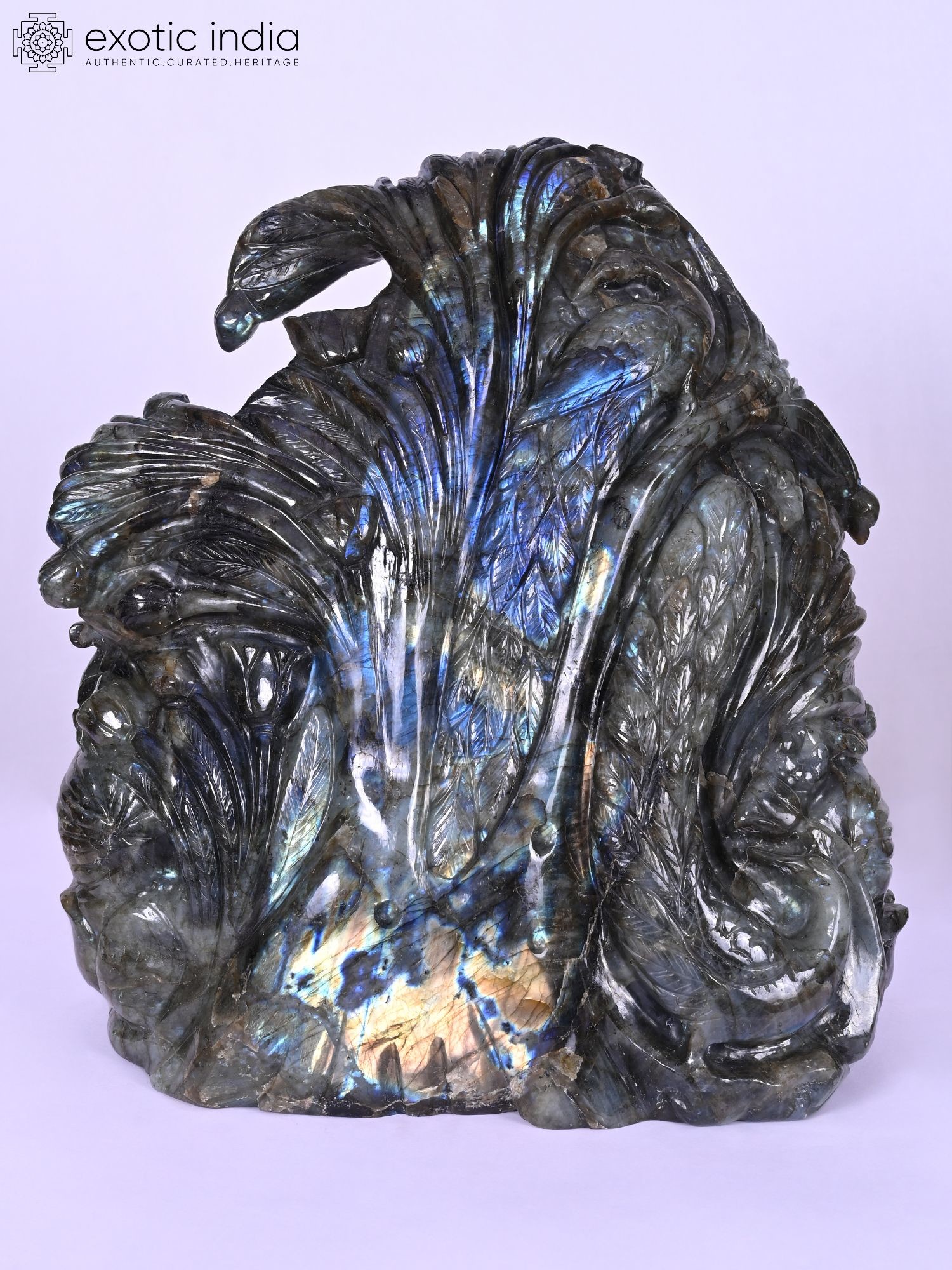 Observe the captivating iridescent shimmer that dances across the surface, a signature characteristic of fine gemstone work. This dynamic visual quality adds a layer of opulence, making the figure appear almost to glow from within. The artist's keen eye for composition is evident in the balance and symmetry of the design, creating a visually harmonious and arresting form. The sheer presence of this piece, standing at a notable height, ensures it commands attention and admiration in any setting.