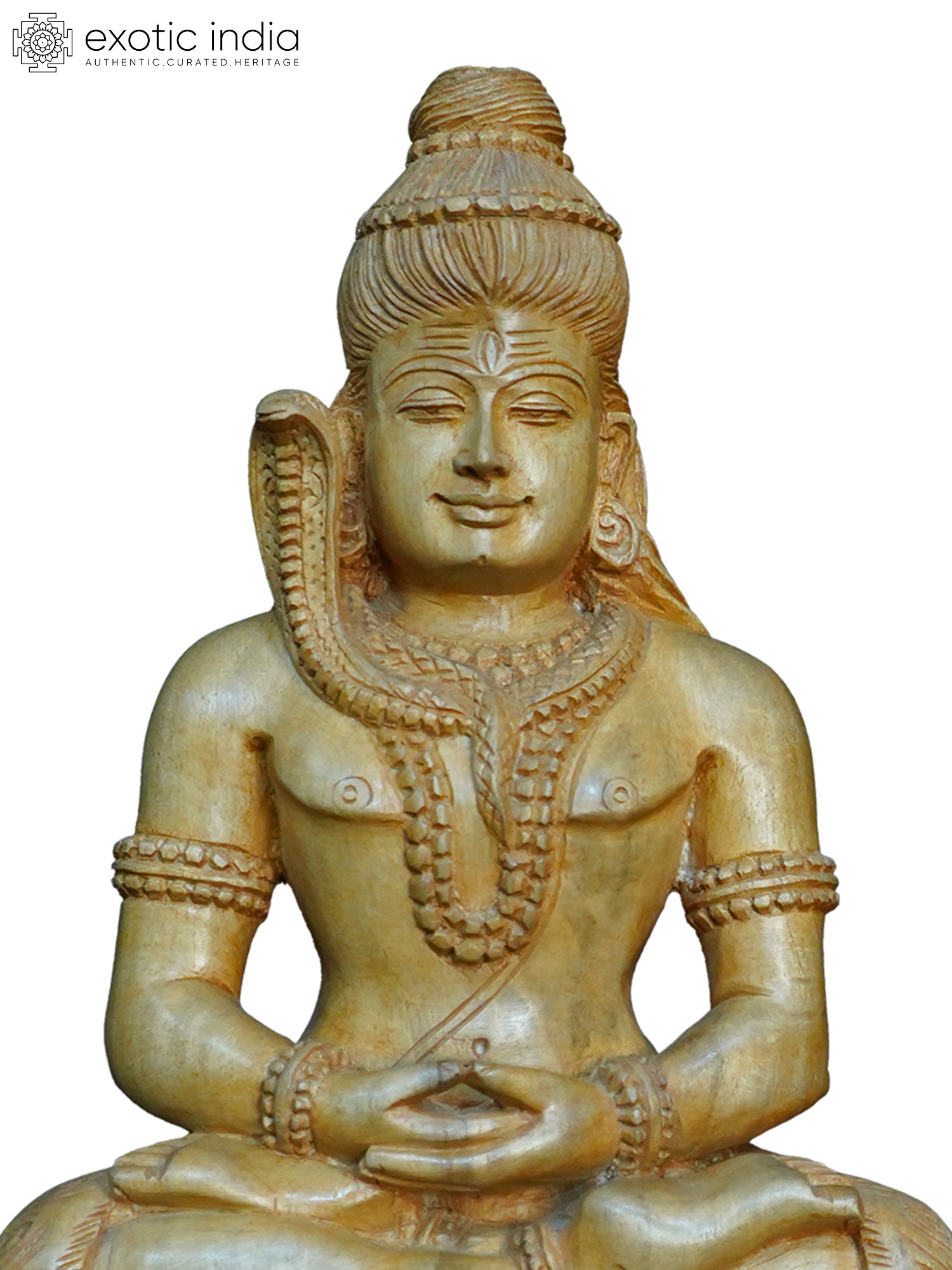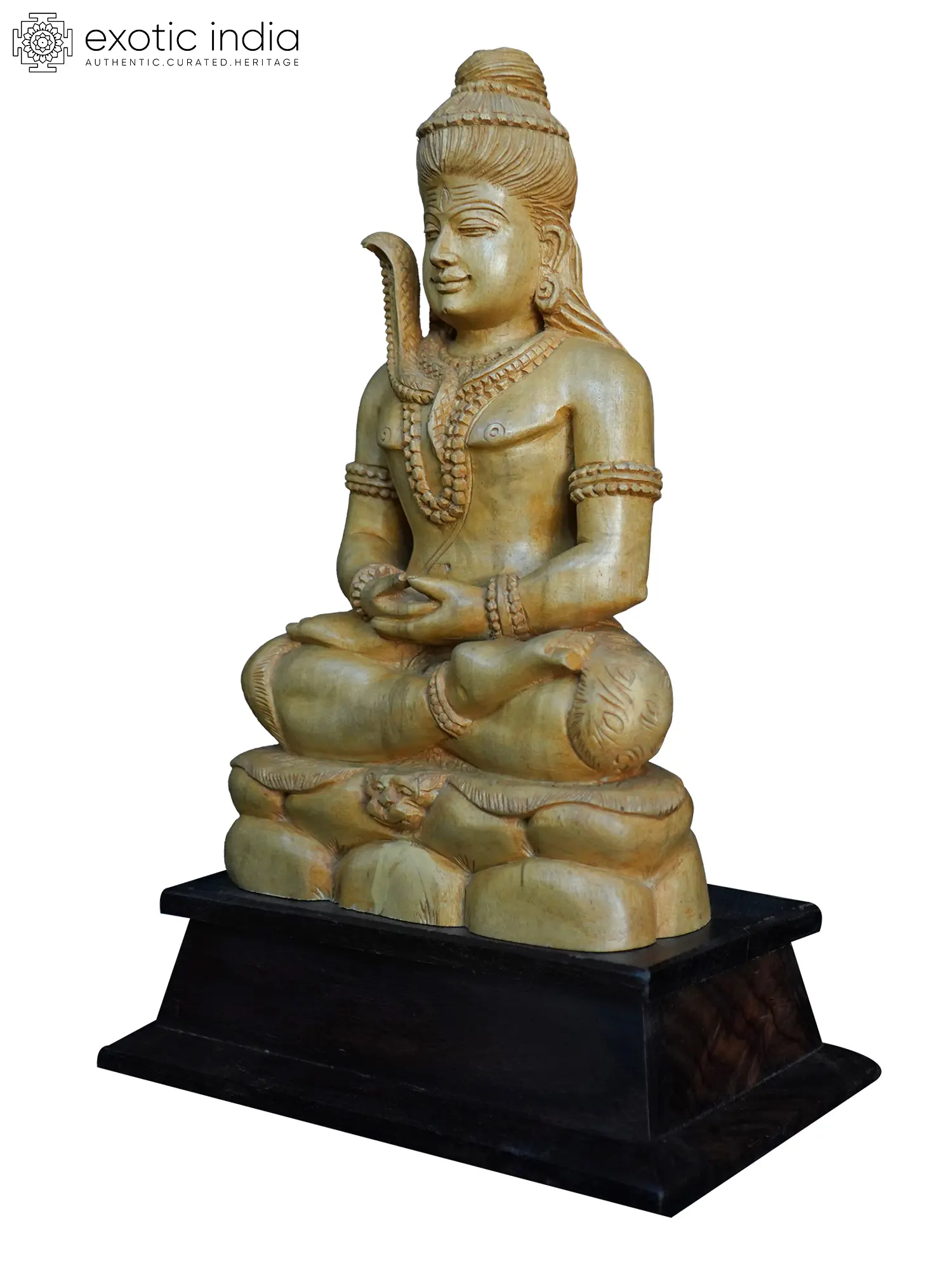 24" Sitting Lord Shiva as Pashupatinath | Wood Carving