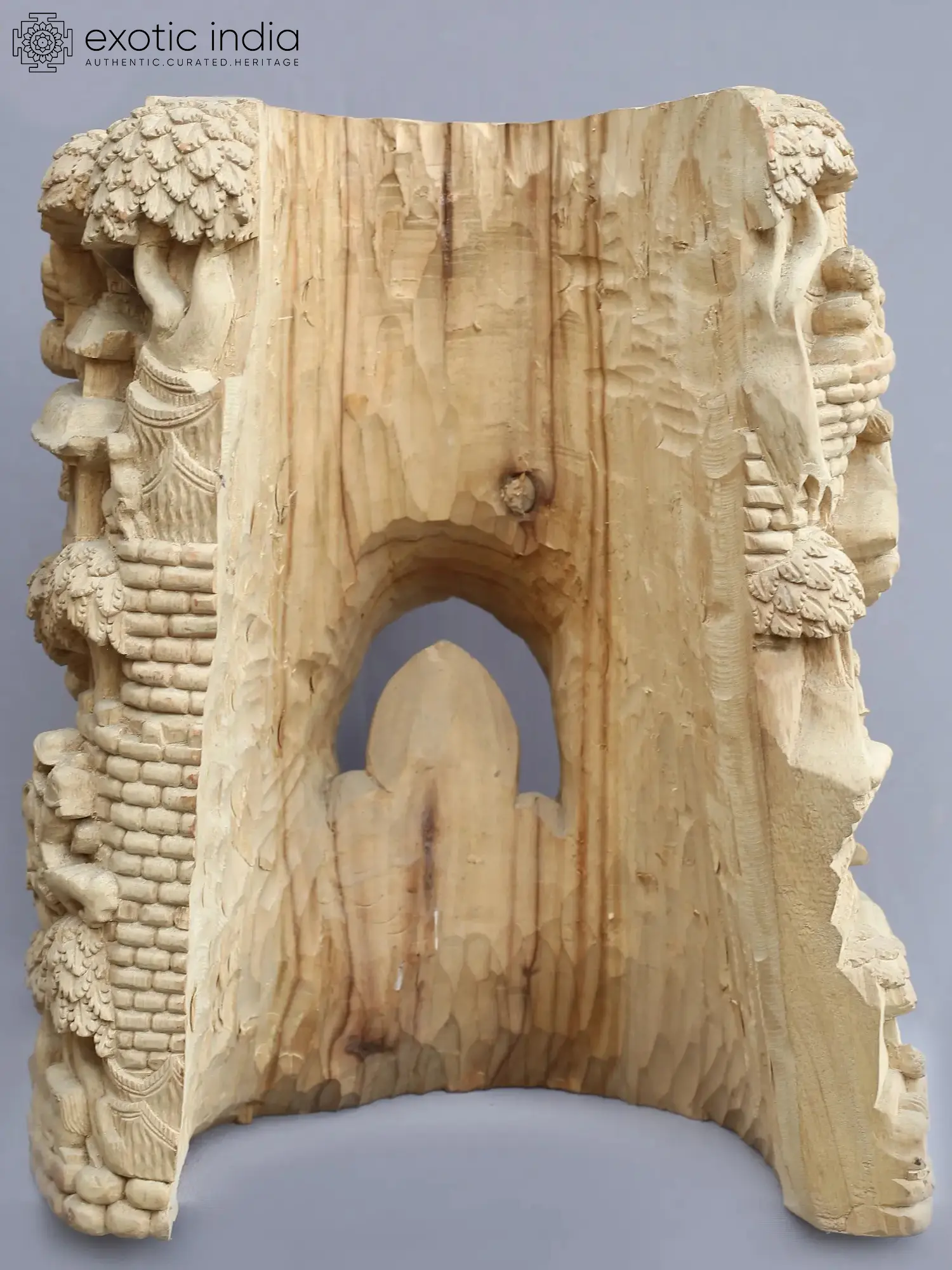This exquisite wooden sculpture embodies the profound essence of the Medicine Buddha, Bhaisajyaguru, a revered bodhisattva in Mahayana Buddhism known as the master of healing. Crafted by skilled Nepalese artisans, this piece transports you to a realm of peace and well-being, meticulously carved from a single piece of wood to showcase a dynamic, multi-layered scene. The natural beauty of the wood itself, with its subtle grain and warm tone, enhances the spiritual aura of the carving. The central figure of the Medicine Buddha is depicted in a meditative pose, seated upon a lotus throne, his posture radiating tranquility and compassion. He holds an alms bowl in his left hand, traditionally filled with medicinal herbs, symbolizing his ability to heal all sentient beings from the suffering of illness, both physical and mental. His serene expression invites contemplation and a sense of inner calm.