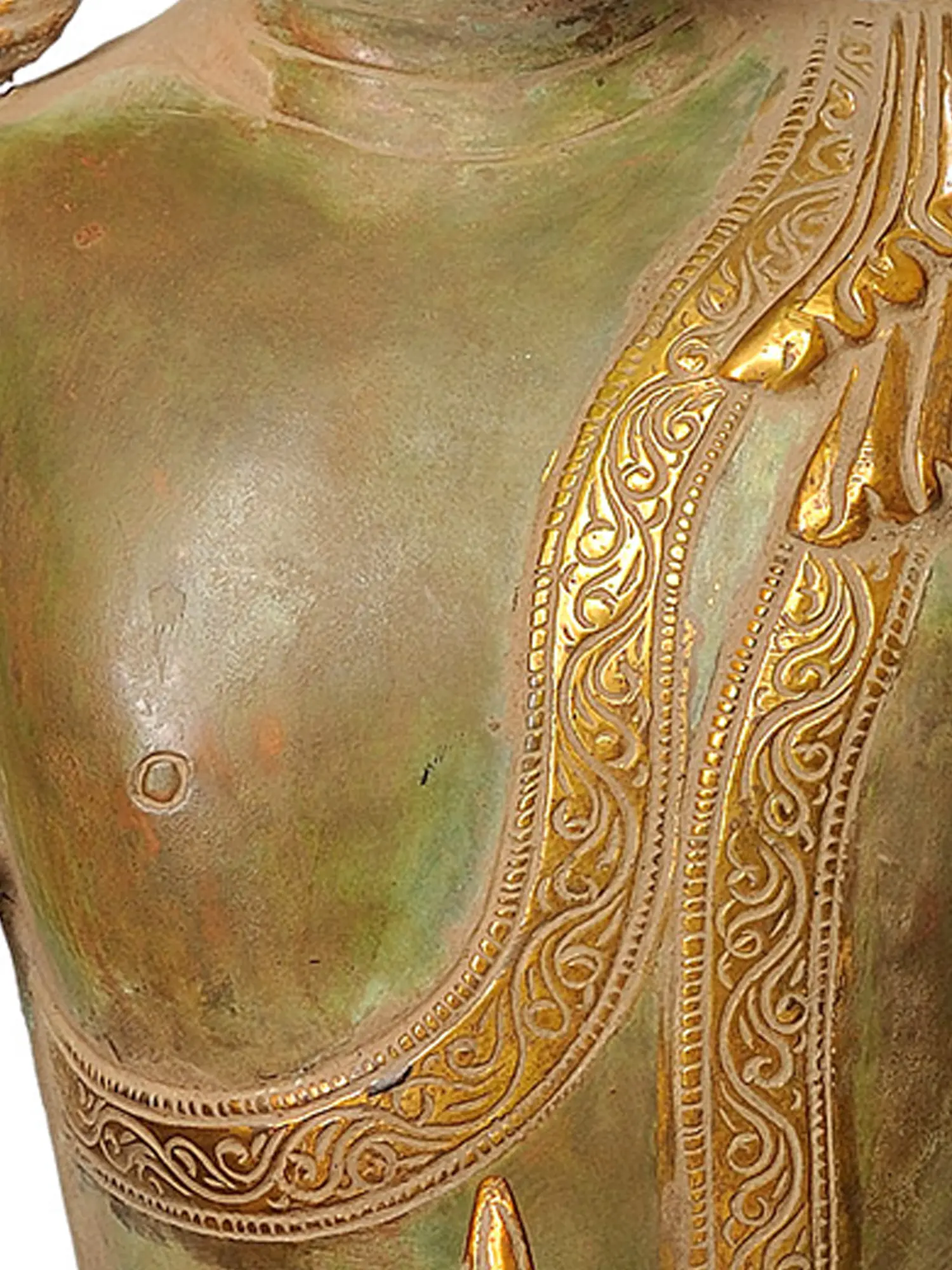 Hand-crafted in India by skilled artisans, this statue is more than just a decorative object; it is a conduit for spiritual energy and a masterpiece of devotional art. The traditional methods of brass casting, passed down through generations, ensure that each piece possesses a unique character and soul. The subtle green patina that graces the surface evokes the verdant growth of the healing plants the Medicine Buddha is associated with, while the finely etched gold accents highlight the divine radiance and ornate robes of the deity. This sculpture is an invitation to cultivate inner peace, promote well-being, and connect with the boundless compassion of the Medicine Buddha. It is a powerful reminder that true healing comes from within, guided by wisdom and sustained by mindful practice.