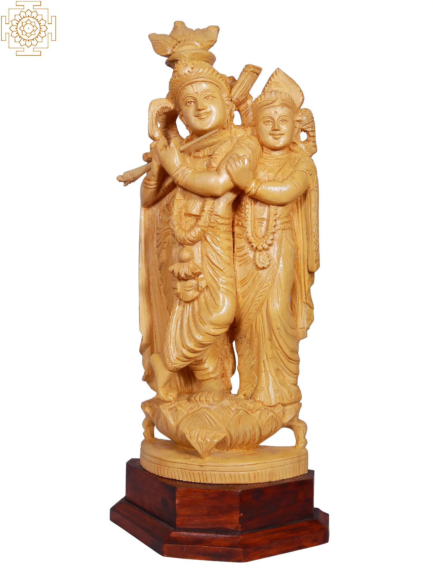 This substantial 15-inch statue serves as a powerful focal point for any altar, meditation space, or home decor. The natural wood grain adds warmth and character, while the detailed craftsmanship ensures that every aspect of this divine couple is beautifully articulated. Whether you are a devoted follower of Lord Krishna or simply appreciate the beauty of intricately carved art, this Radha Krishna sculpture is a testament to artistic skill and spiritual depth. It is a piece that invites contemplation, inspires devotion, and brings an aura of divine serenity into your living space.