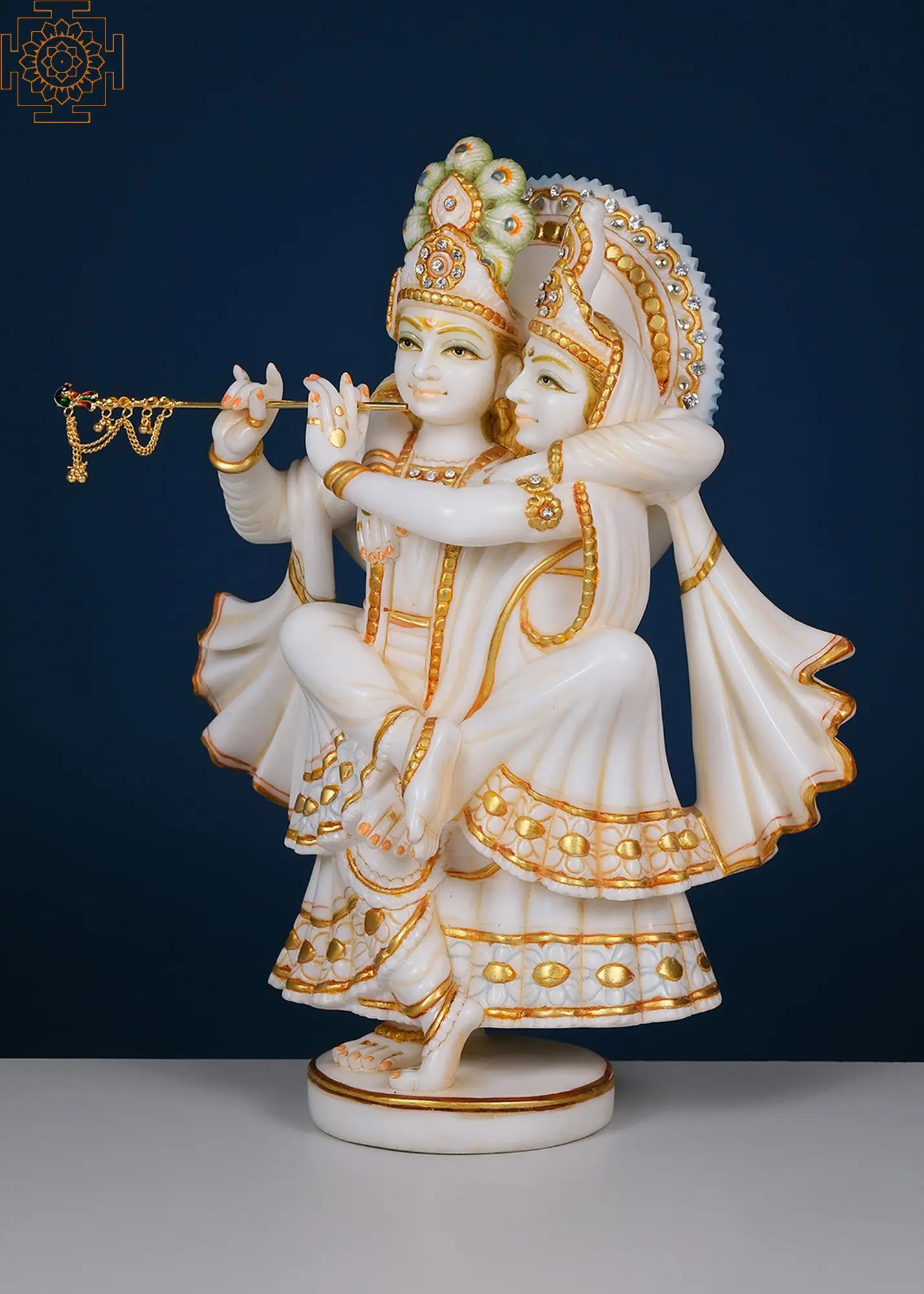 Embodiment of Divine Love: Radha Krishna in White Marble