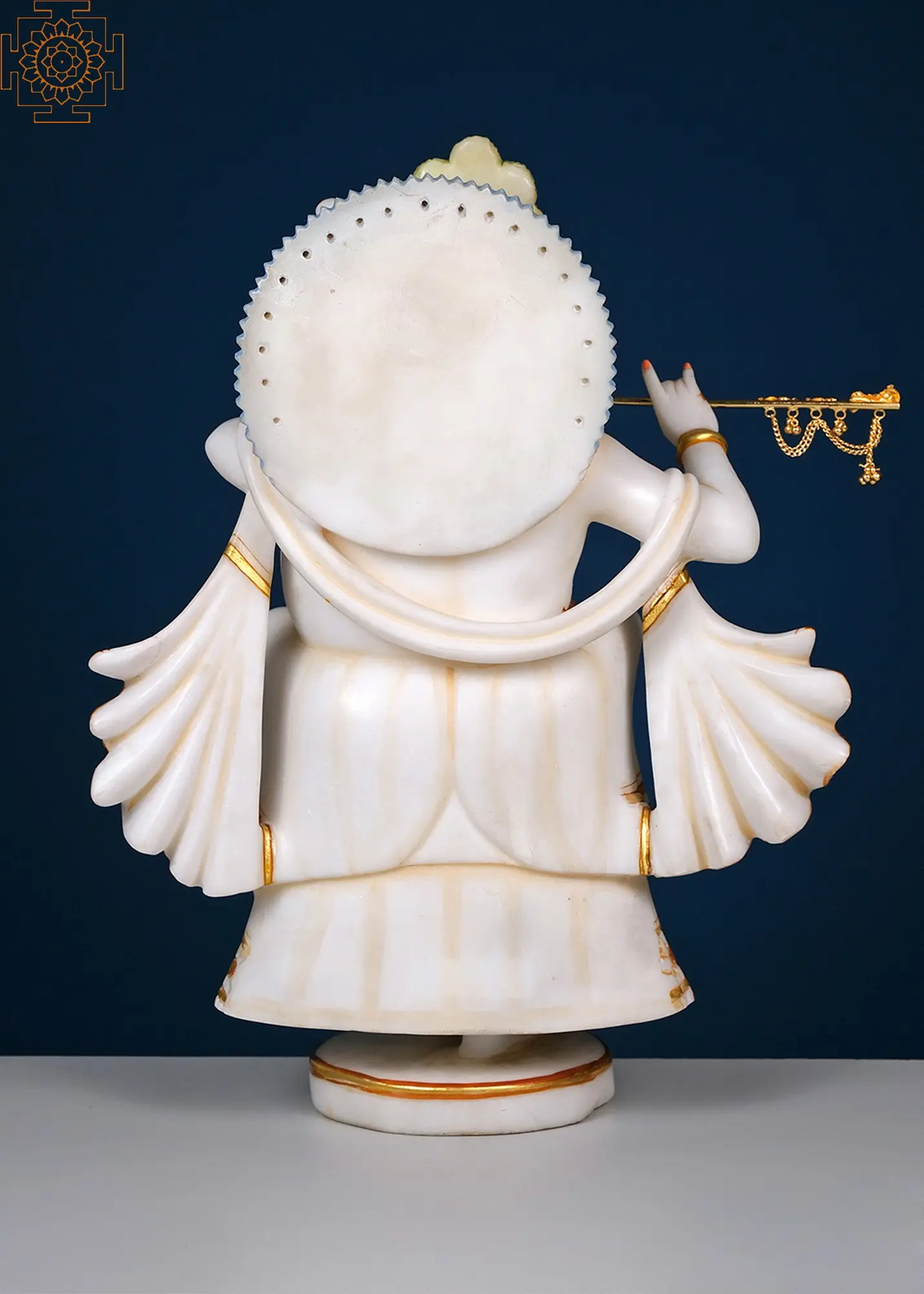 This statue is more than just a decorative piece; it is a conduit for spiritual energy and a reminder of the power of love and devotion. Placing it in your home can create an atmosphere of peace, harmony, and divine blessings. The white marble itself is considered sacred in many traditions, representing purity, truth, and knowledge. The detailed craftsmanship and the spiritual essence captured in this sculpture make it a perfect centerpiece for your prayer room, altar, or any space where you seek solace and divine connection. It makes a thoughtful and meaningful gift for loved ones, symbolizing the hope for eternal love and spiritual union in their lives. The intricate details, from the tiny bells adorning the flute to the elaborate patterns on their garments, showcase the dedication and artistry poured into its creation, ensuring it becomes a cherished heirloom for generations to come.