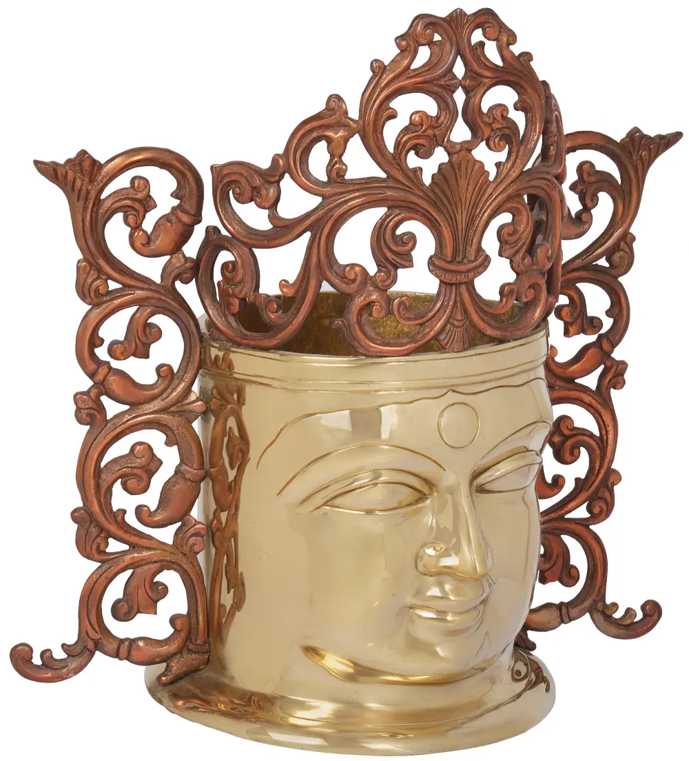 Welcome the majesty and beauty of the great goddess in your home aesthetics, with this pure brass handmade artwork, inspired by the splendor of Devi Parvati. The glorious countenance of the goddess is delineated perfectly, adorned by bustling vines which represent the origination of life, at whose root is the benevolence of the Adi Shakti.