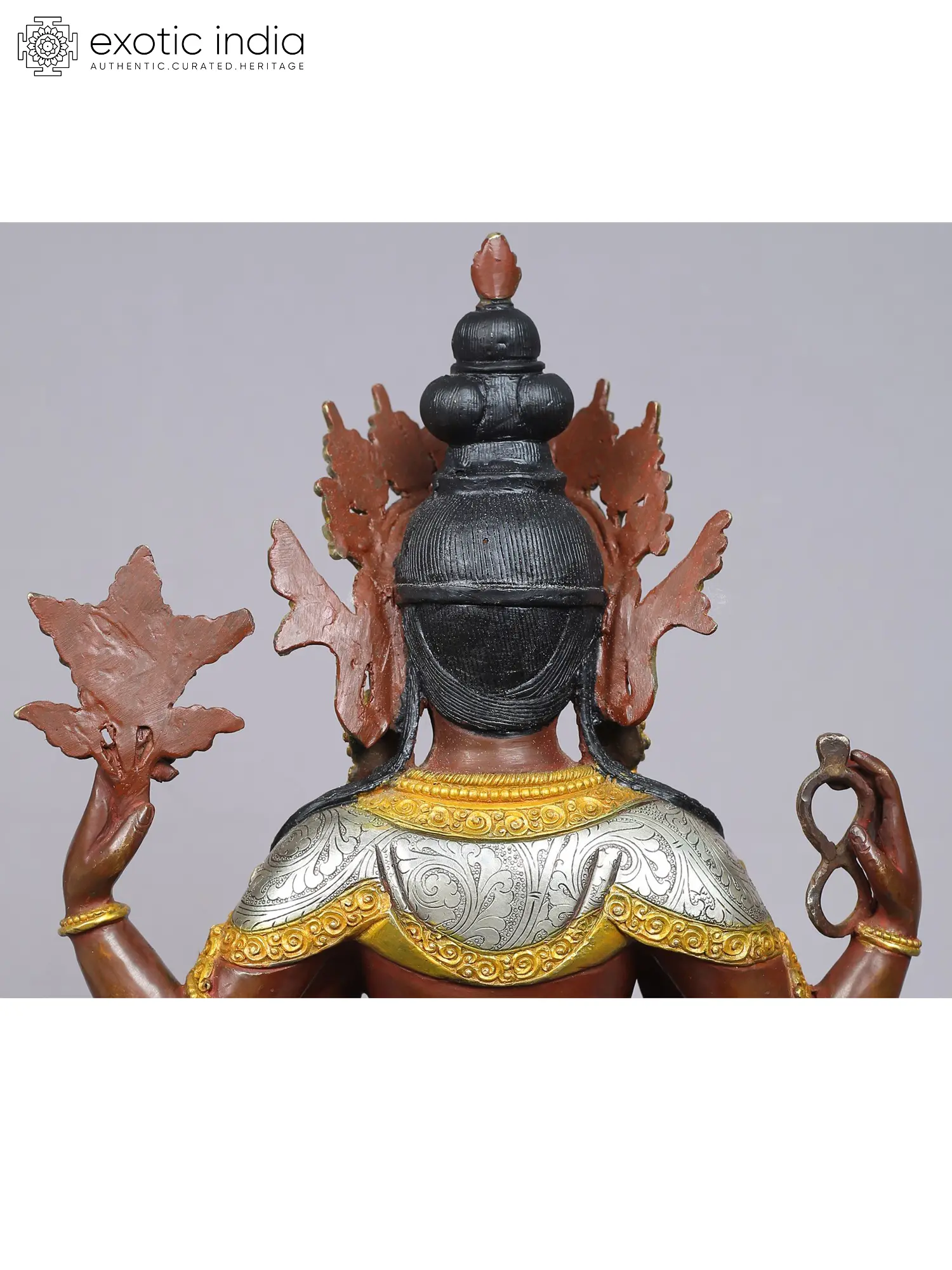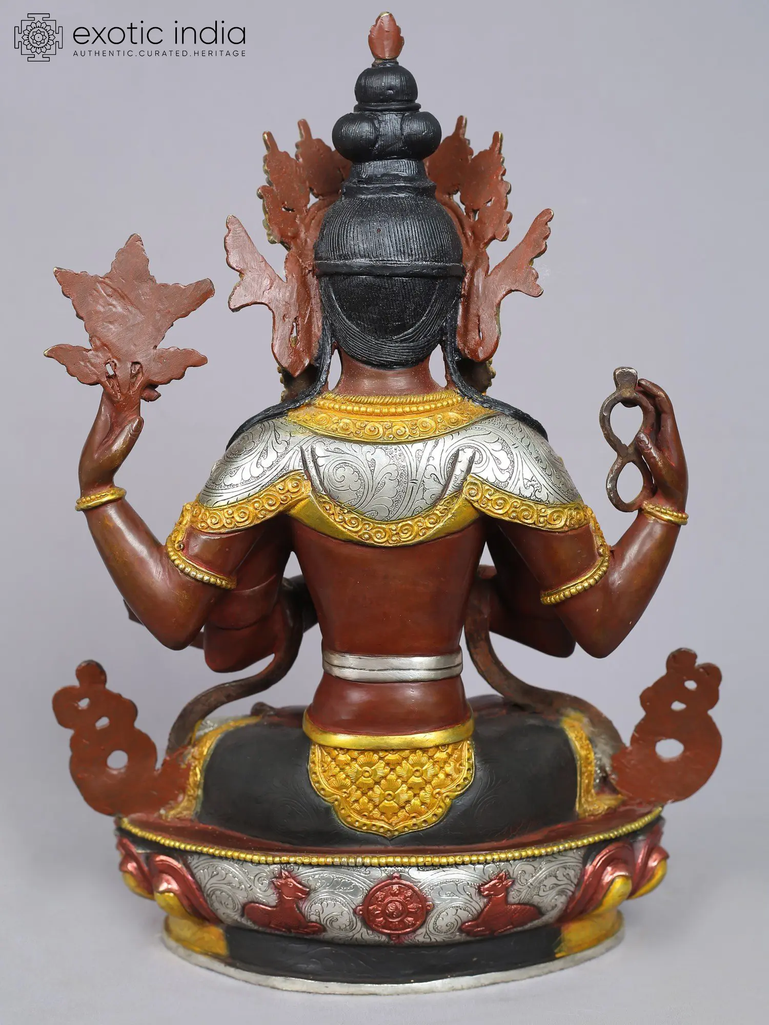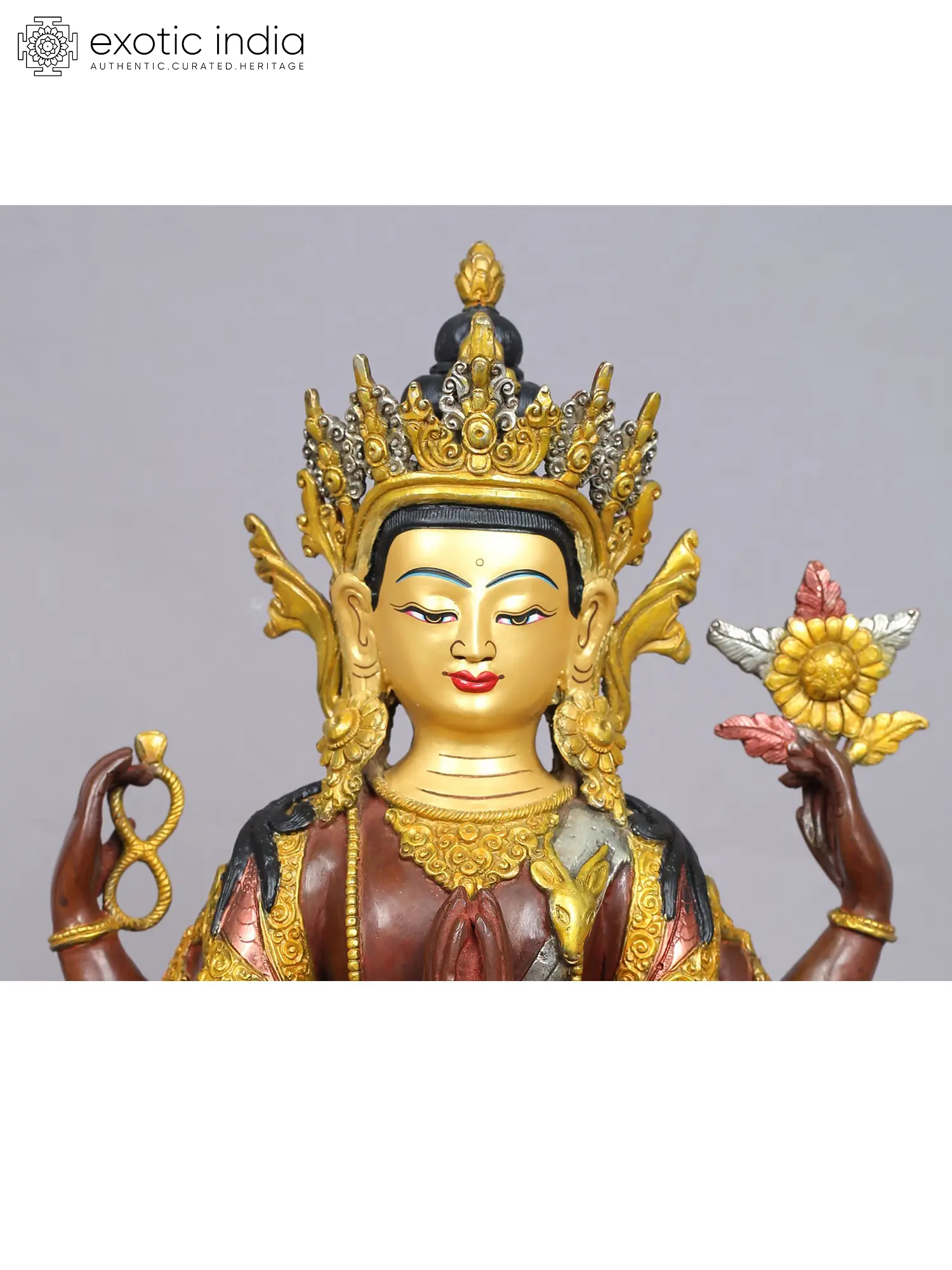 Chenrezig, known by various names like Avalokiteshvara in Sanskrit, Kuan Yin in Chinese, and Kannon in Japanese, symbolizes freedom from the veils of Samsara. His four arms represent the virtues of love, compassion, joy, and equanimity, forming the foundation of bodhicitta, the practice of compassion in Buddhism.