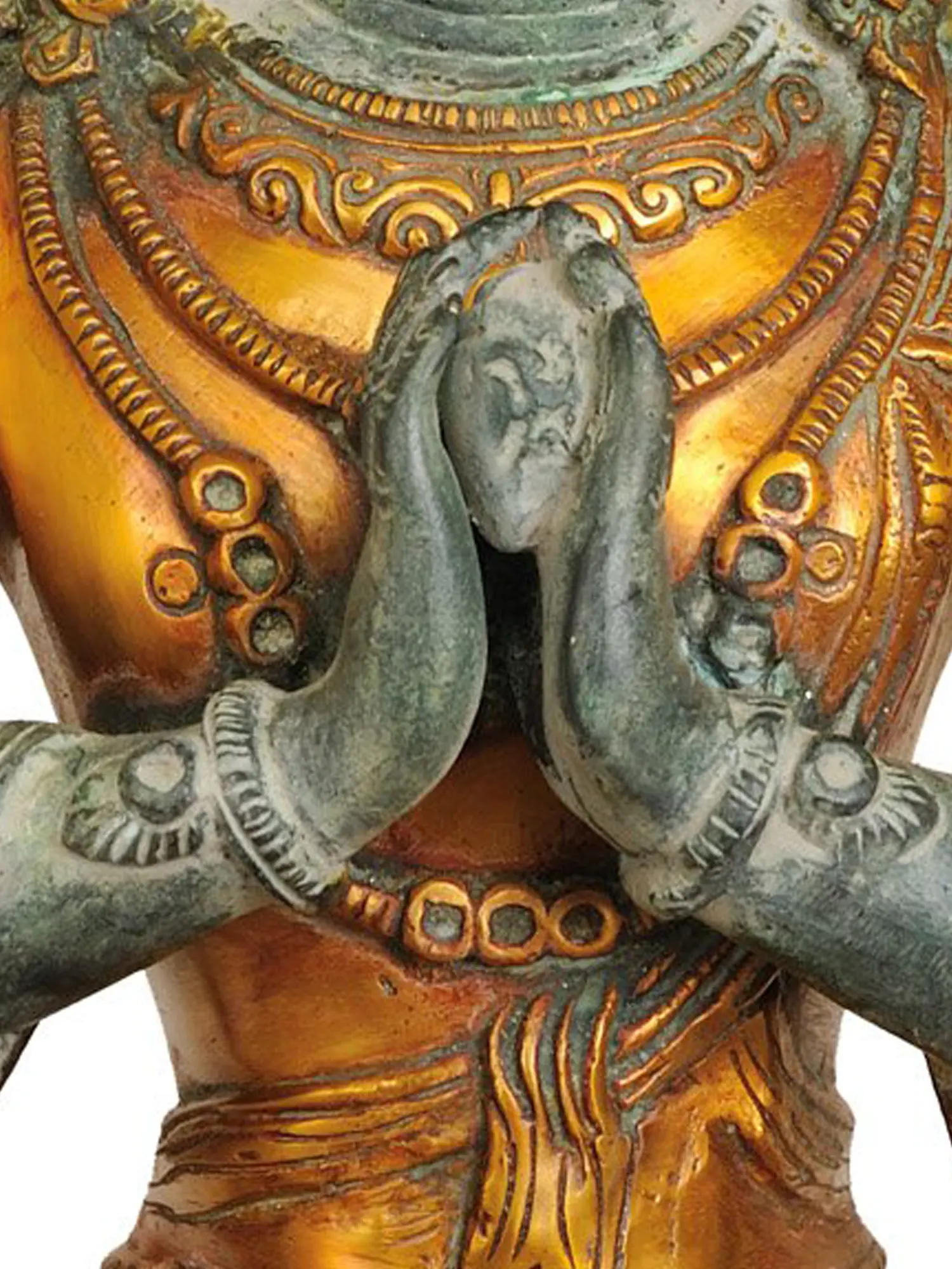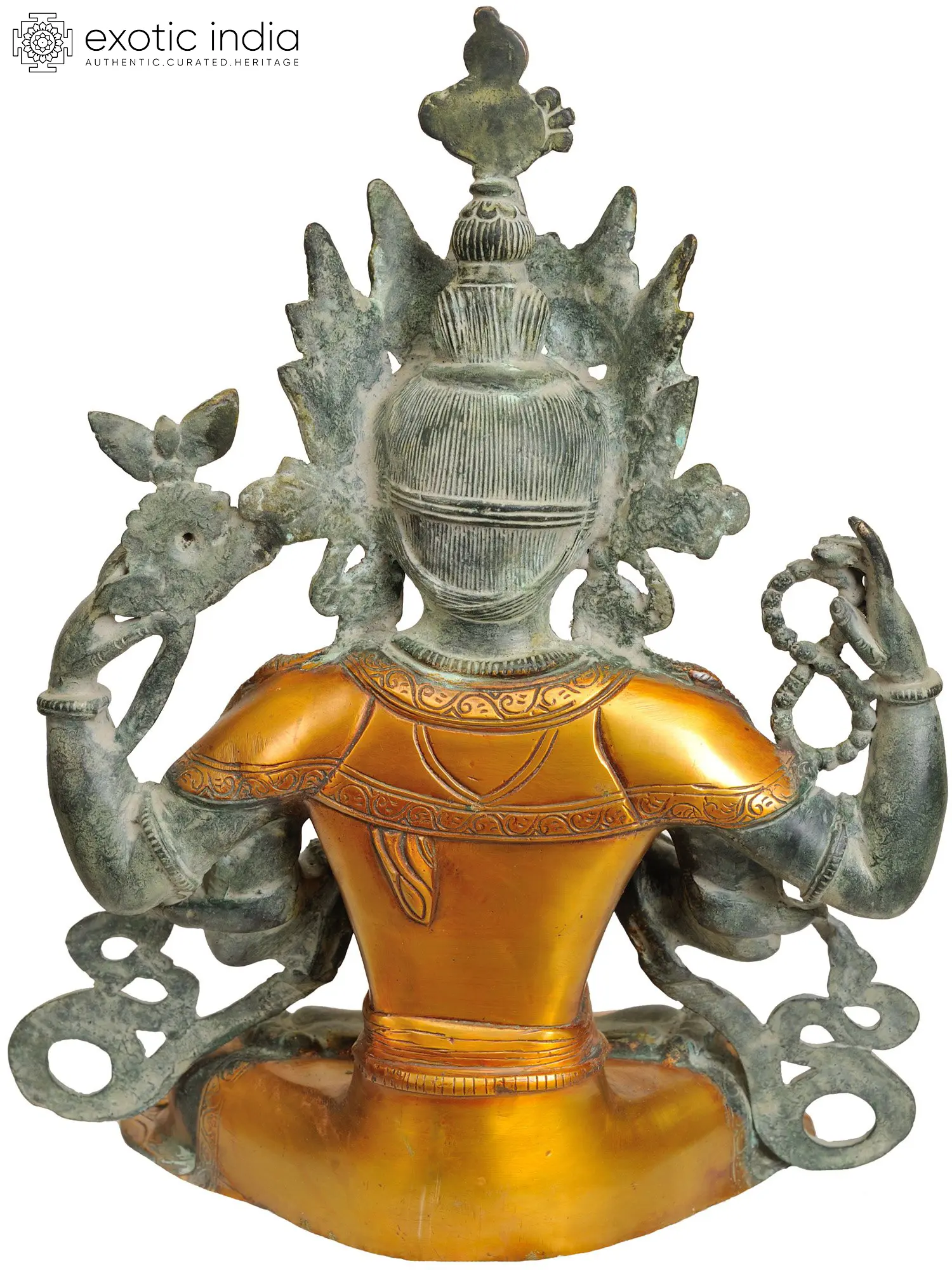 15" Tibetan Buddhist Deity Chenrezig In Brass | Handmade | Made In India