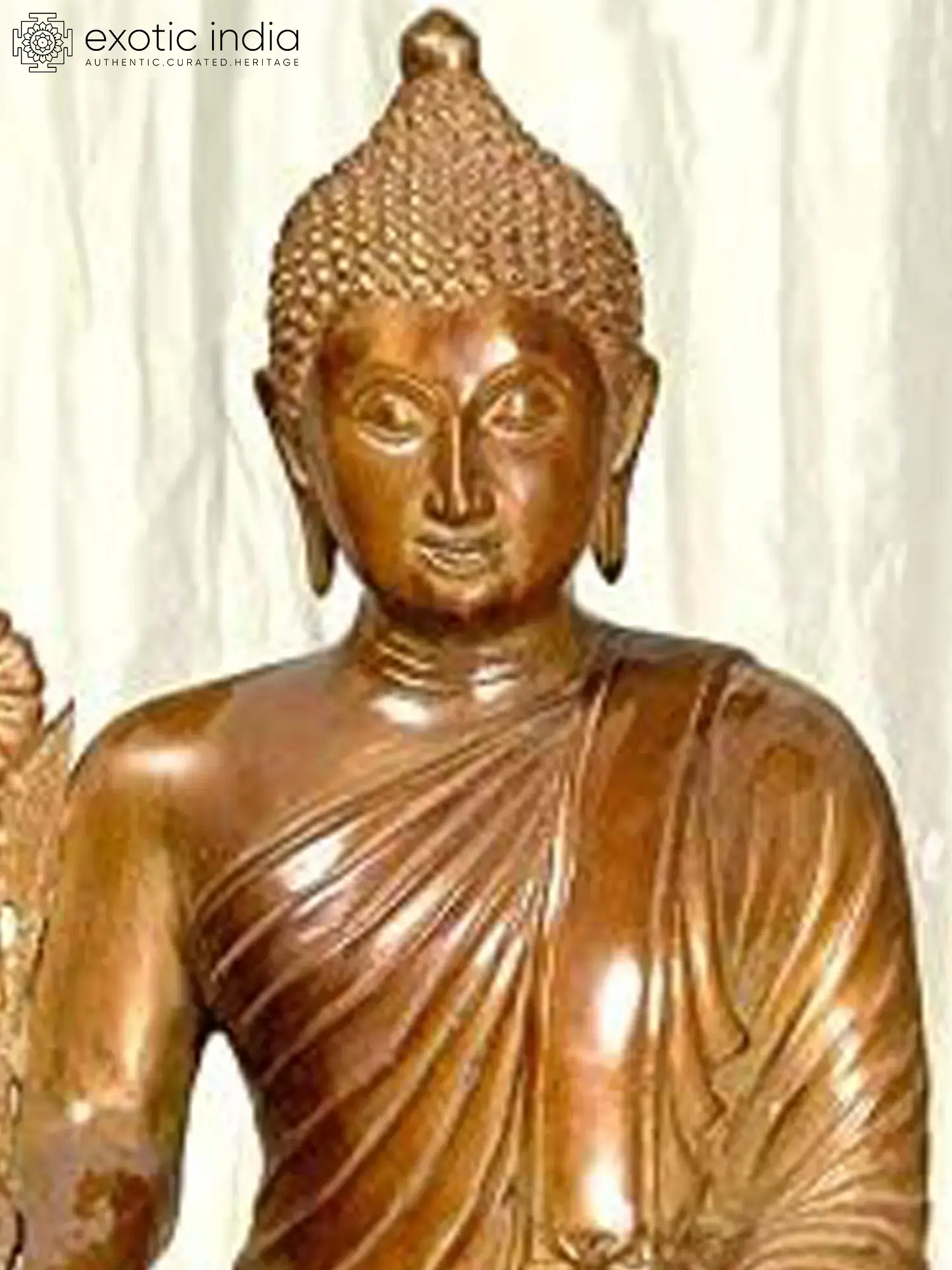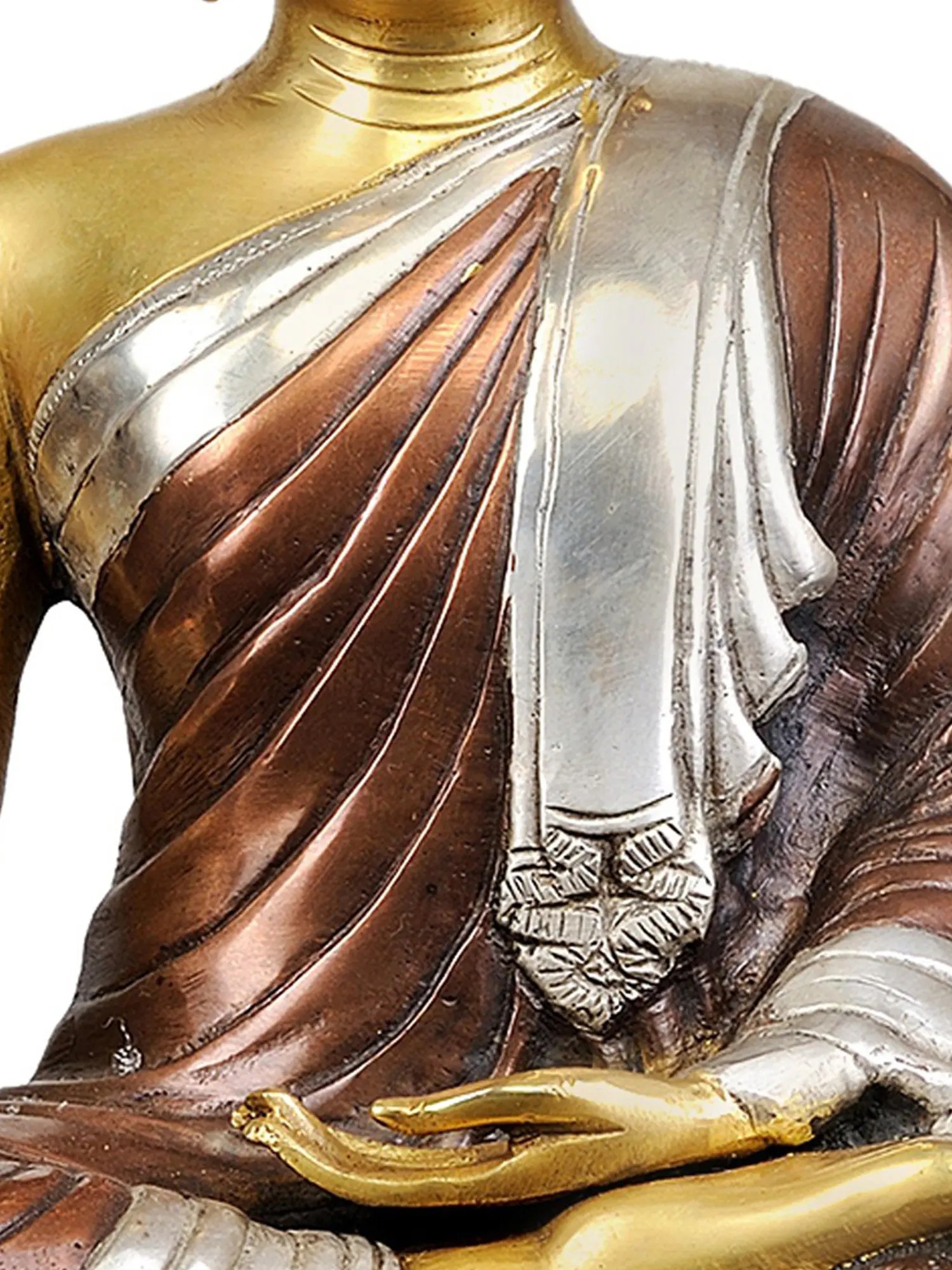 This statue is a testament to the skill and dedication of Indian artisans. The intricate details, from the gentle expression on the Buddha's face to the delicate rendering of his robes, are a reflection of their deep understanding and reverence for the subject. The use of brass, a metal prized for its durability and symbolic association with radiance and strength, adds to the statue's enduring quality and spiritual significance. Its creation is not just a craft, but a devotional act, infused with the intention of bringing healing and peace to those who encounter it. This handmade artifact carries the cultural heritage of generations.