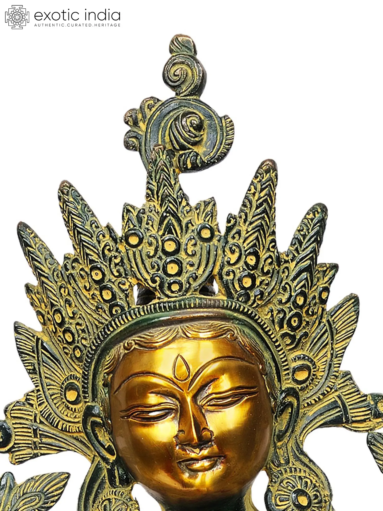 15" Tibetan Buddhist Goddess Green Tara In Brass | Handmade | Made In India