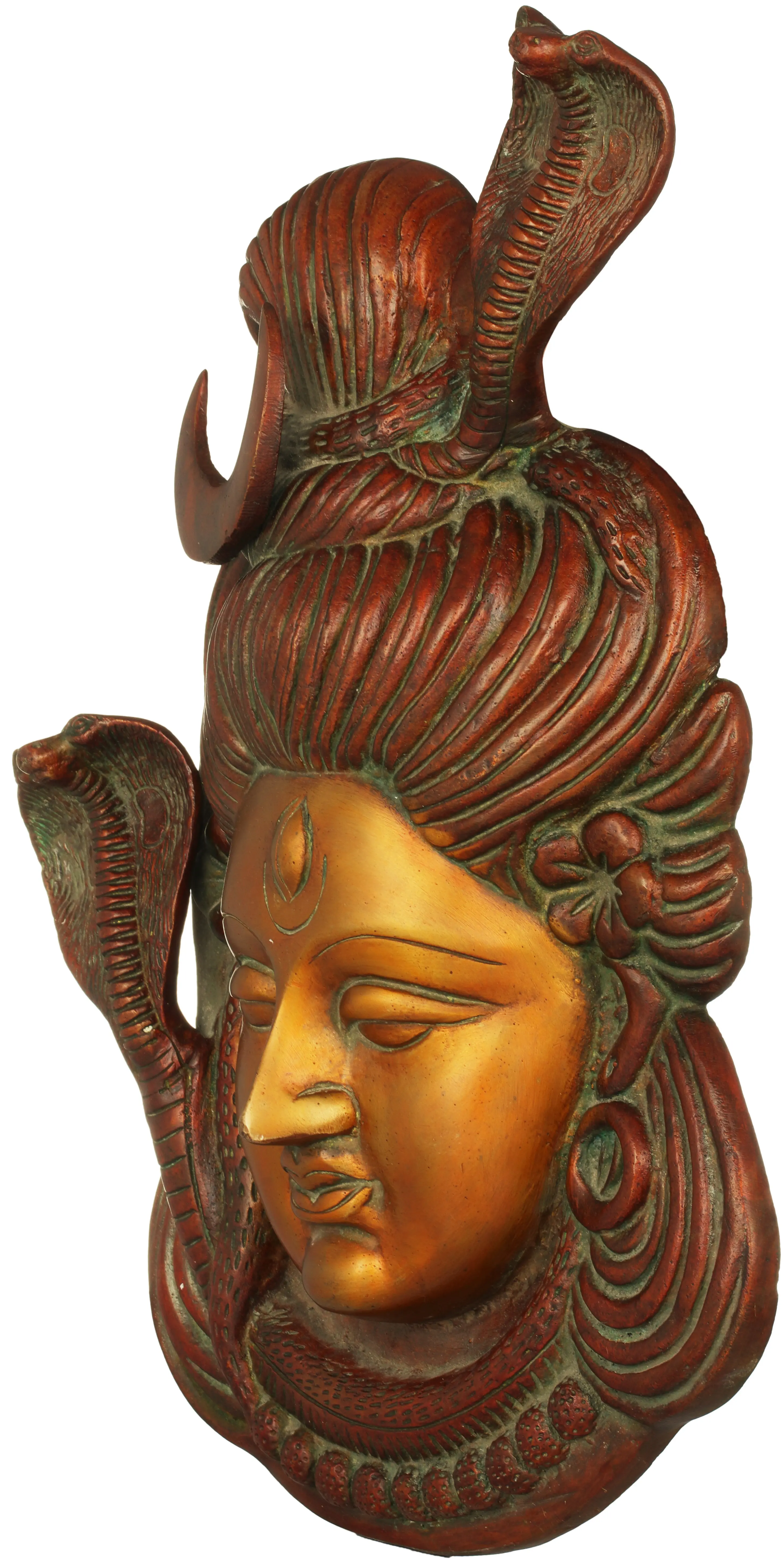Shiva is the great god of destruction and creation. This auspicious Mahadeva is one of the principle deities of Hinduism and a destructor in Trimurti. The copper-colored mask has clearly sculpted expressions and trinetra represents the physical world while the third eye signifies looking beyond the obvious- the eye for knowledge.