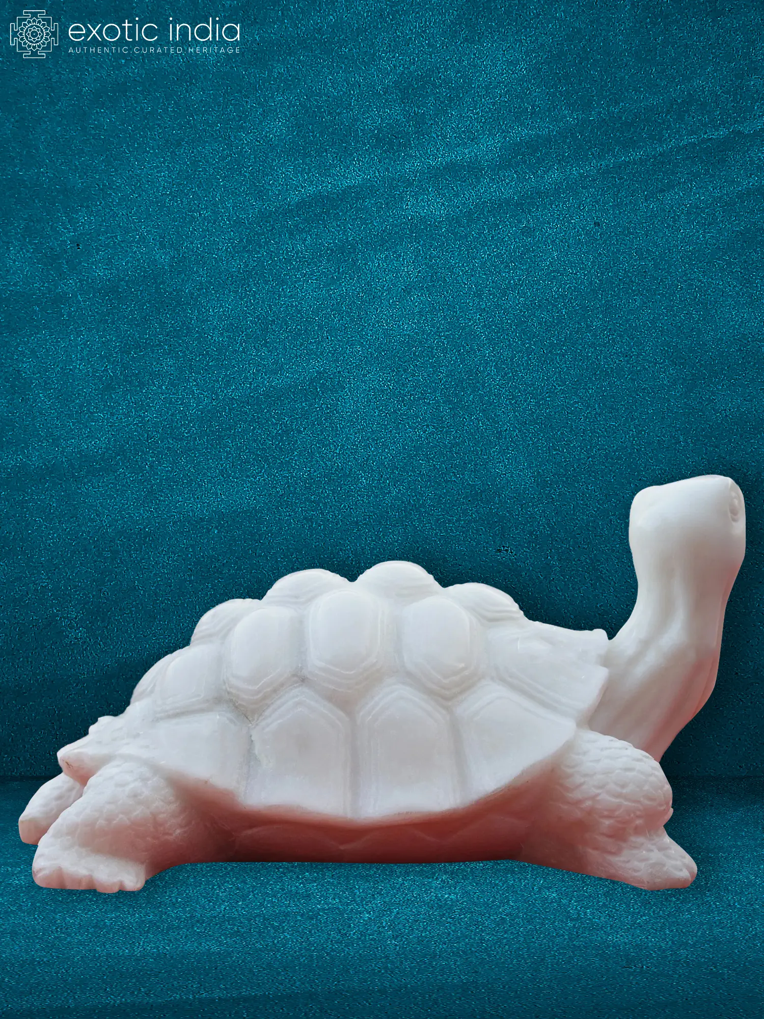 The choice of white marble for this sculpture is deliberate, amplifying its symbolic meaning. Marble, a stone of exceptional beauty and durability, has been the medium of choice for artists for millennia, from classical Greek sculptures to Mughal architectural marvels. Its inherent luminosity and ability to hold fine detail allow for the subtle textures and contours of the turtle's shell and limbs to be rendered with remarkable lifelikeness. The smooth finish of the marble enhances the tactile experience, inviting a contemplative engagement with the artwork. This piece is a testament to the skill of the artisan, who has transformed a raw block of stone into a work of art imbued with both naturalistic grace and profound spiritual resonance, making it a truly remarkable addition to any collection or sacred space.