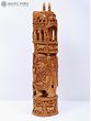 12" Beautiful Ashoka Stambh - Wood Statue With Carving