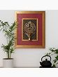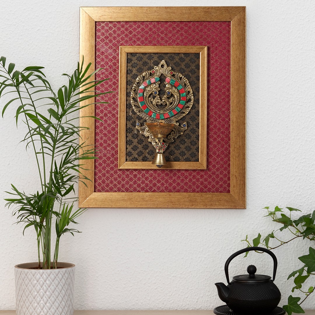 This stunning wall-hanging decor piece brings a touch of timeless tradition and spiritual significance to any space. Crafted with meticulous detail, the blend of brass and wood creates a visually captivating display. The piece is carefully framed to draw the eye into its intricate design.