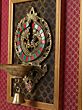 The brass lamp and bell enhance the artistic allure, combining cultural richness with aesthetic appeal. This magnificent wall decor not only celebrates craftsmanship but also adds a touch of elegance and diversity to any space. The thoughtful combination of colors, textures, and materials makes it a truly enchanting piece of art for discerning decor enthusiasts.