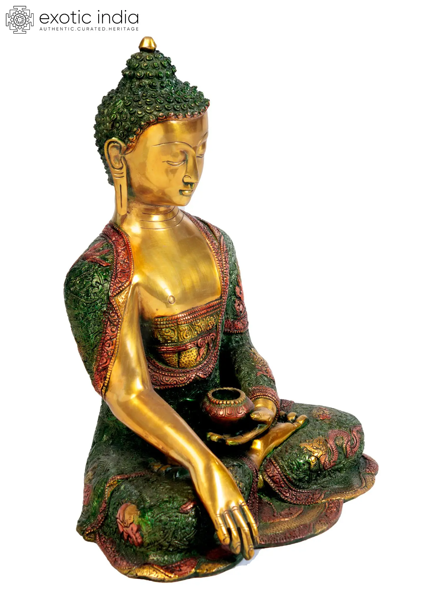 16" Buddha Calling The Earth to be His Witness (Tibetan Buddhist) In Brass | Handmade | Made In India