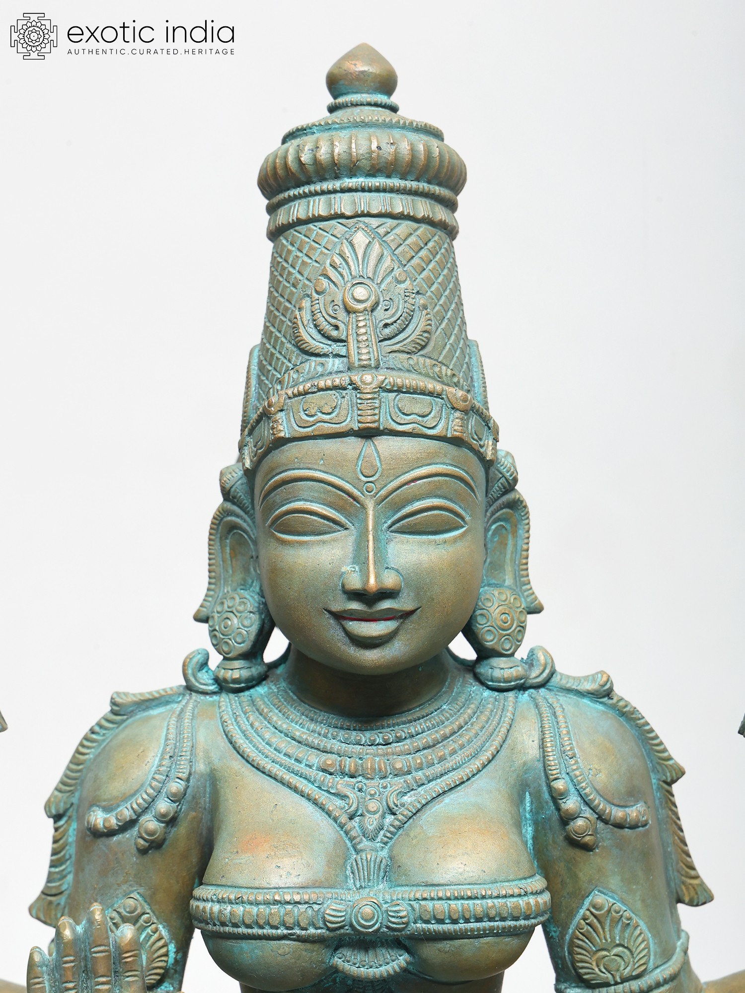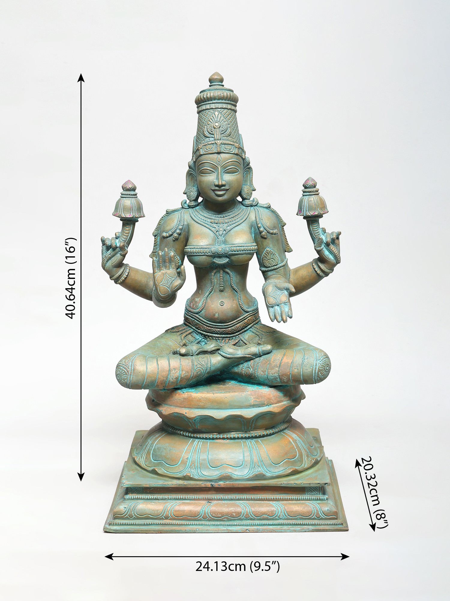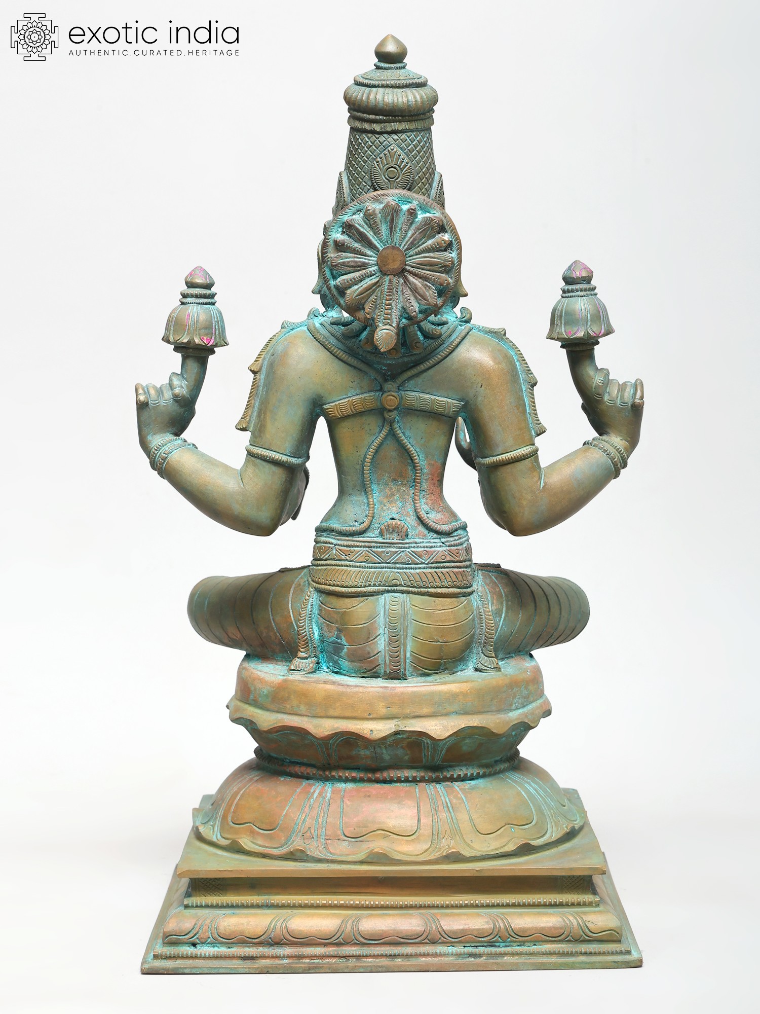 18" Sitting Devi Lakshmi Statue on Double Lotus Base | Handmade | Madhuchista Vidhana (Lost-Wax) | Panchaloha Bronze from Swamimalai