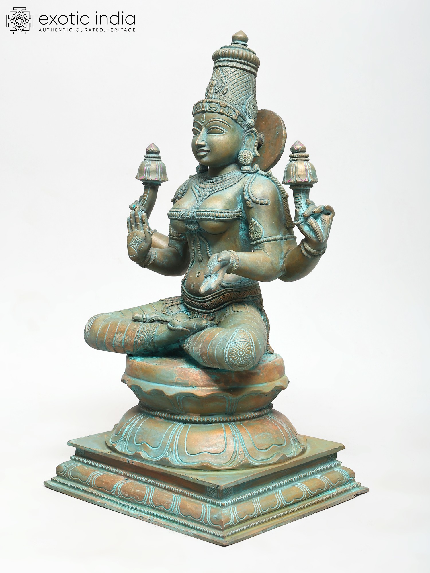 36'' Large Sitting Goddess Lakshmi | Madhuchista Vidhana (Lost-Wax) | Panchaloha Bronze from Swamimalai