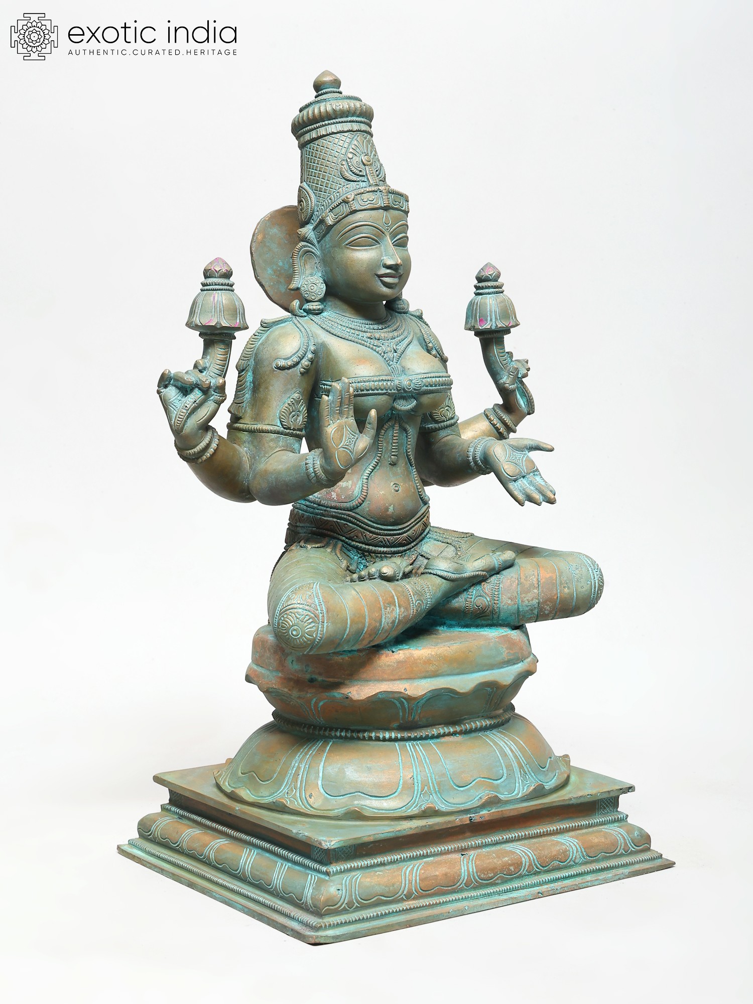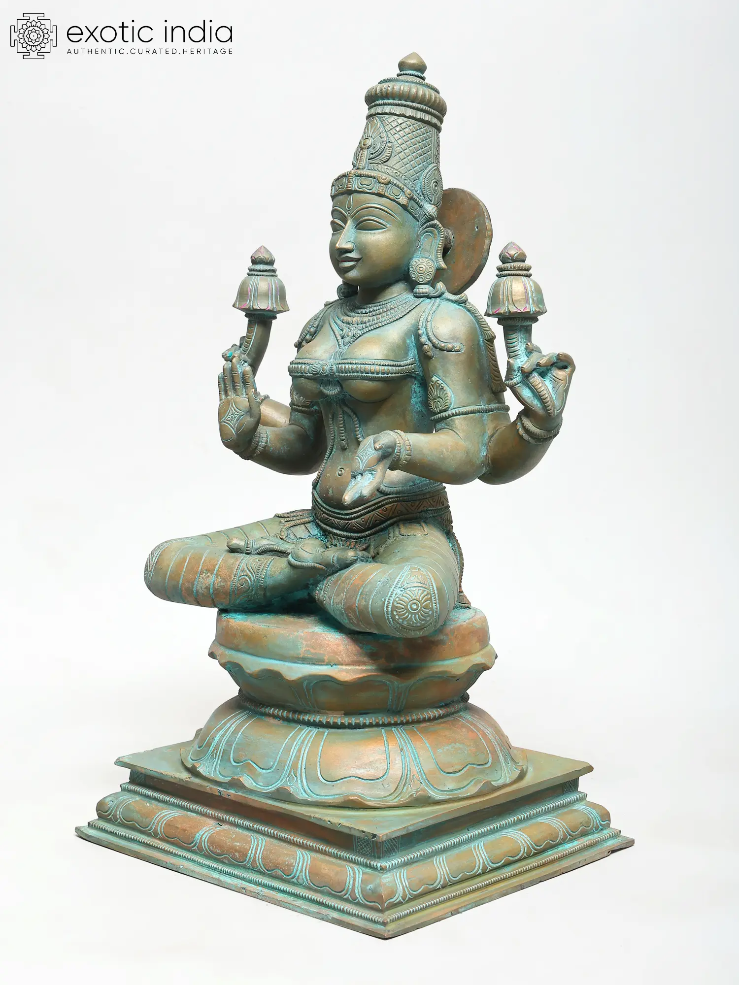23" Sitting Devi Lakshmi Panchaloha Bronze Statue on Double Lotus Base