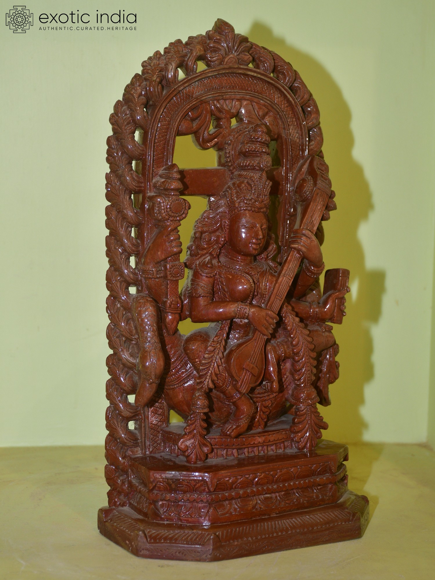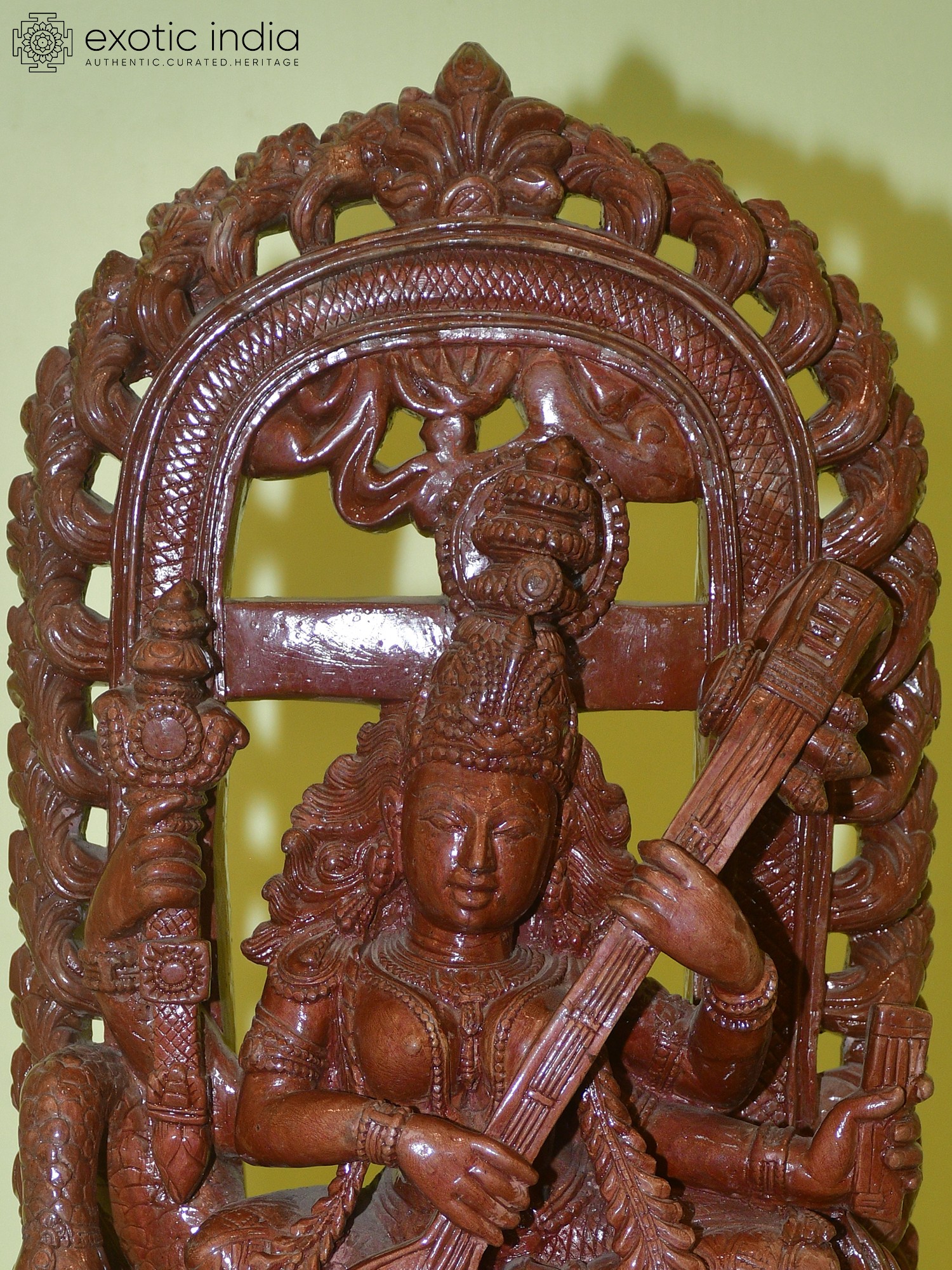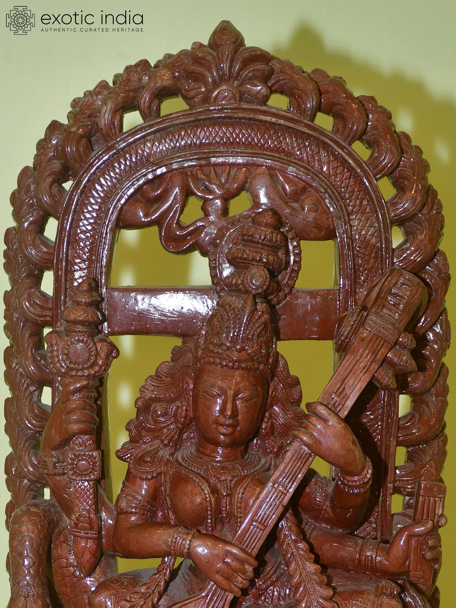 40" Standing Vishnu-Lakshmi Brass Idol with Wooden Wall-Hanging Temple - Handmade, Made in India
