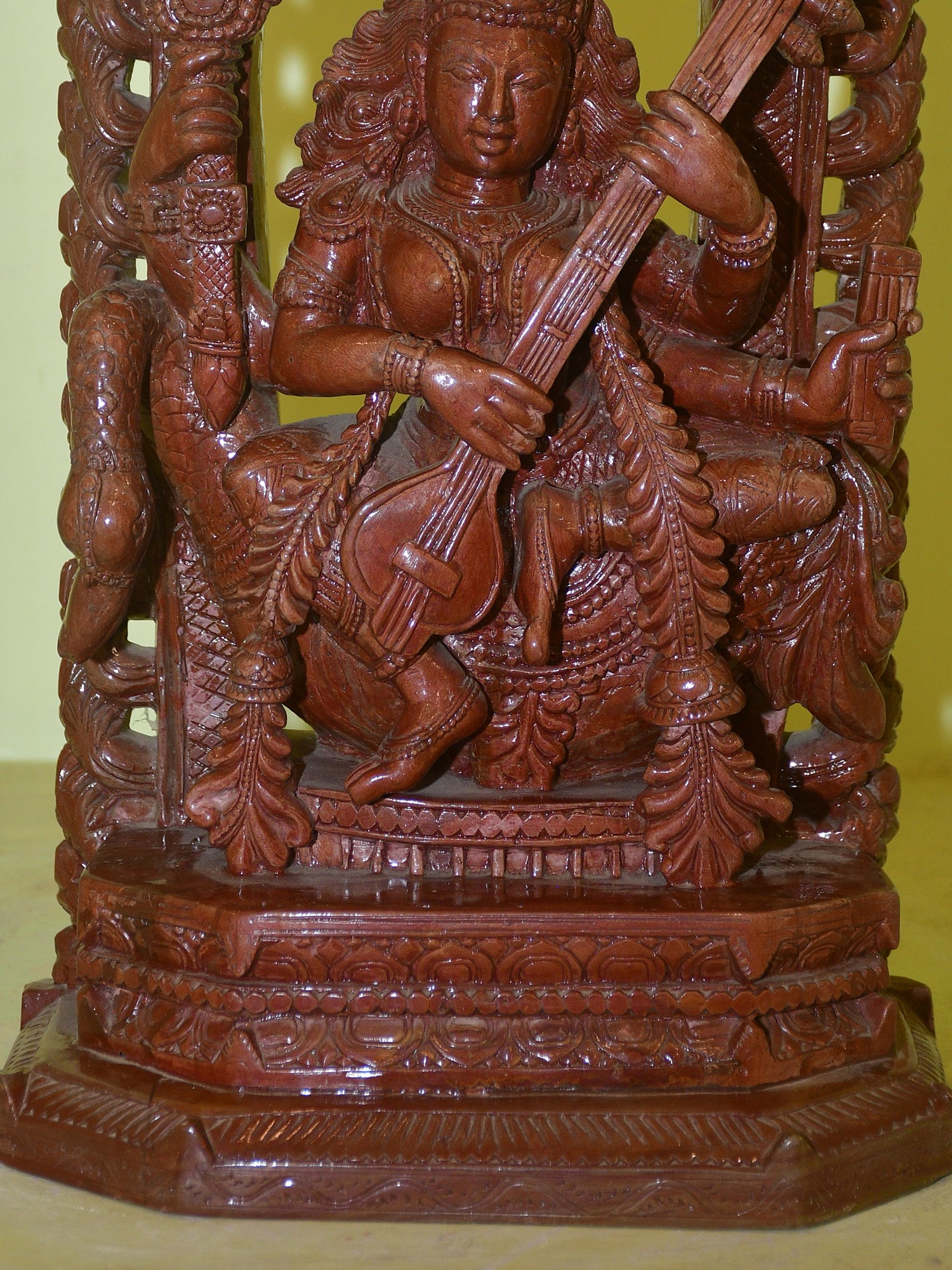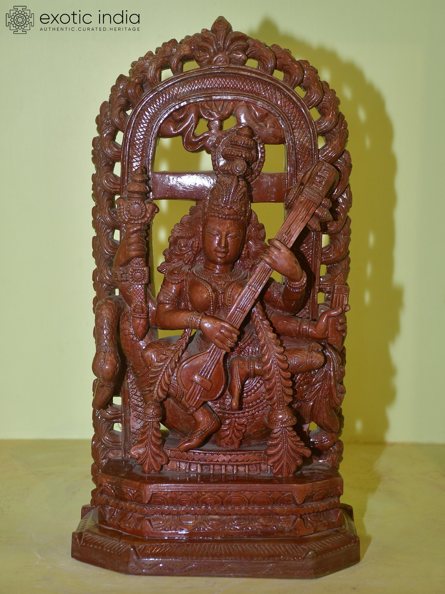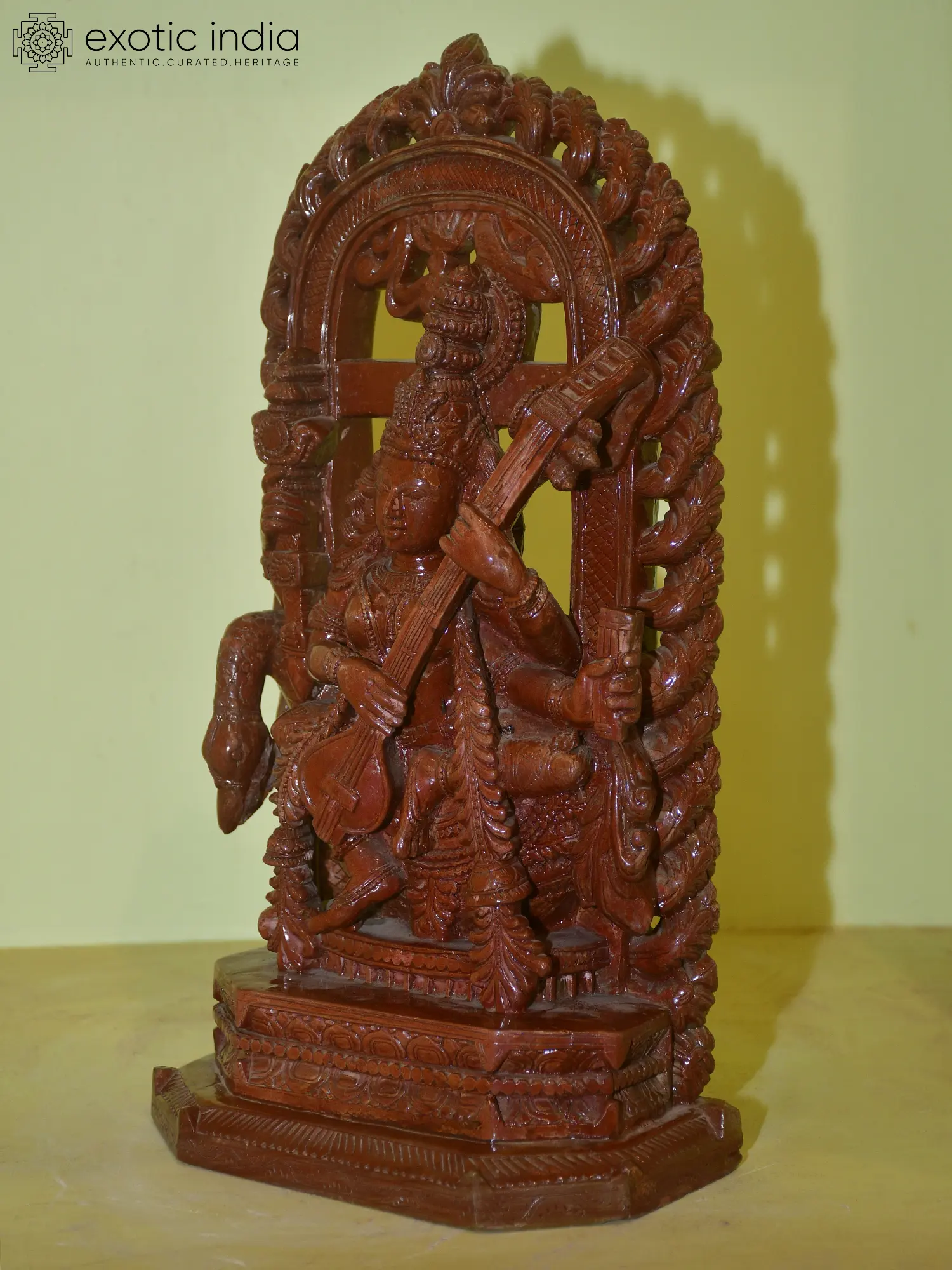 40" Standing Vishnu-Lakshmi Brass Idol with Wooden Wall-Hanging Temple - Handmade, Made in India